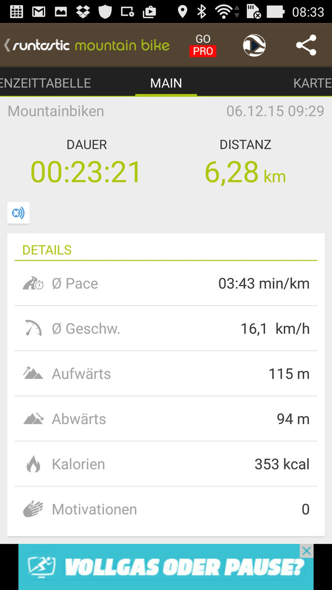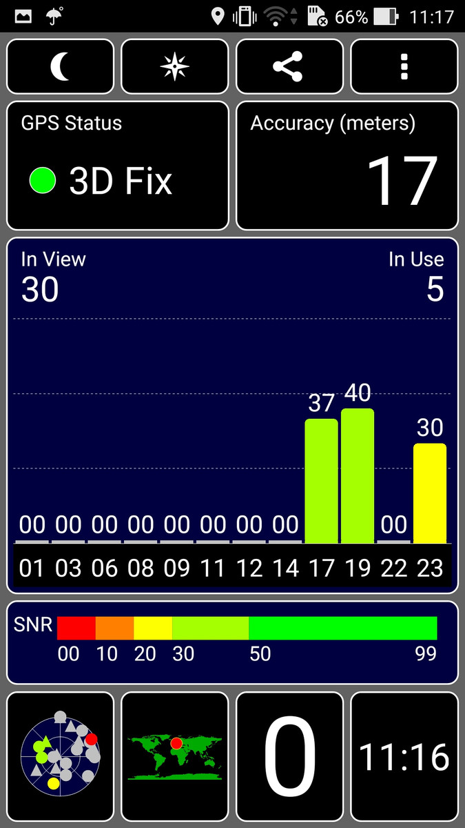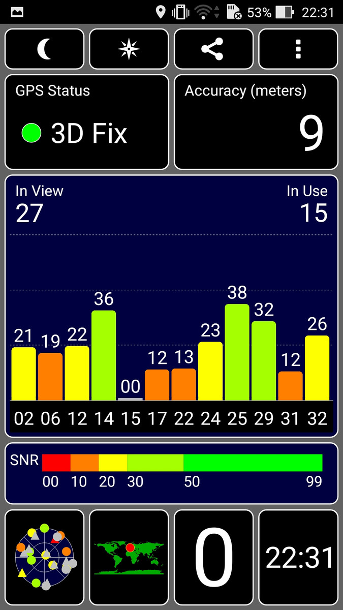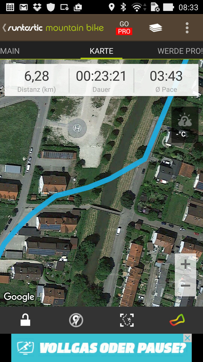 Die Position des Smartphones kann via A-GPS, GLONASS und BeiDou bestimmt werden. Mit der App GPS Test war die Lokalisierung sowohl im Freien als auch im Gebäude (in Fensternähe) innerhalb von rund 20 Sekunden möglich. Um die Genauigkeit zu überprüfen, nehmen wir das Smartphone mit auf eine Fahrradtour und vergleichen die Ergebnisse mit dem professionellen Navigationsgerät Garmin Edge 500. Die Abweichungen zwischen den beiden Geräten liegen bei unter 200 Metern, was ein ordentliches Ergebnis darstellt. Bei genauerer Betrachtung erkennt man, dass die Position des Smartphones seltener bestimmt wird, wodurch es schneller zu "Abkürzungen" kommen kann. Bei der Navigation im Auto sollte es aber zu keinen Beeinträchtigungen kommen.