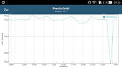 In der Vergangenheit haben wir oft gesehen, dass solch geringe Temperaturen oft mit einer gedrosselten Leistung erkauft werden. Das können wir in diesem Fall aber nicht bestätigen. Im GFXBench Akku-Test bleibt die Leistung während der gesamten Dauer konstant, lediglich im 29. Durchlauf gibt es einem minimalen Ausreißer (unter 1 %). Die volle Leistung des SoC steht also auch bei längeren Gaming-Sessions uneingeschränkt zur Verfügung.