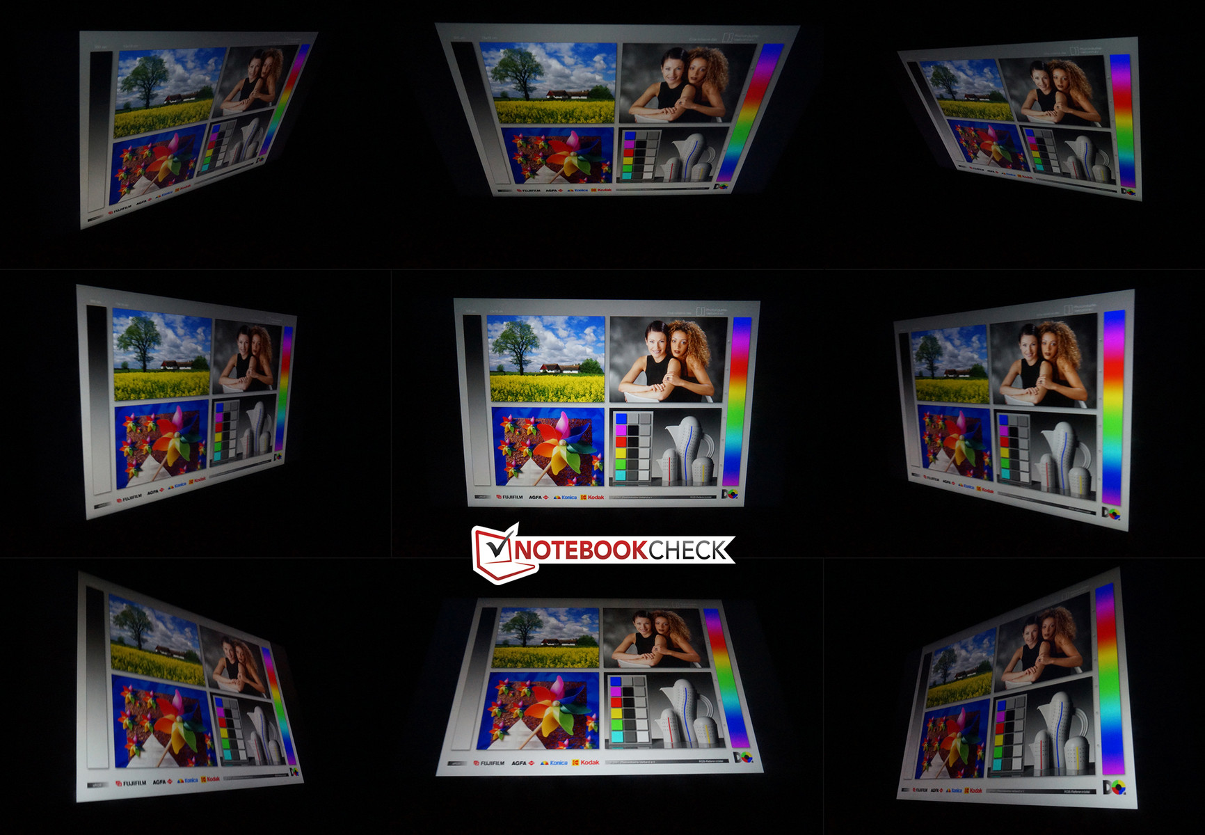 Auch mit dem aktivierten Helligkeitssensor bleibt die maximale Helligkeit bei 392 cd/m². Das reicht zwar aus, um den Bildschirminhalt vernünftig zu sehen. Bei den Vergleichsgeräten ist die Situation dank der höheren Werte für die Helligkeit und den Kontrast jedoch komfortabler. Zudem reicht die Helligkeit nicht aus, um direkter Sonneneinstrahlung auf dem spiegelnden Bildschirm entgegenzuwirken. Die Blickwinkelstabilität des IPS-Displays ist erwartungsgemäß sehr gut. Das Bild bleibt aus allen Richtungen stabil.