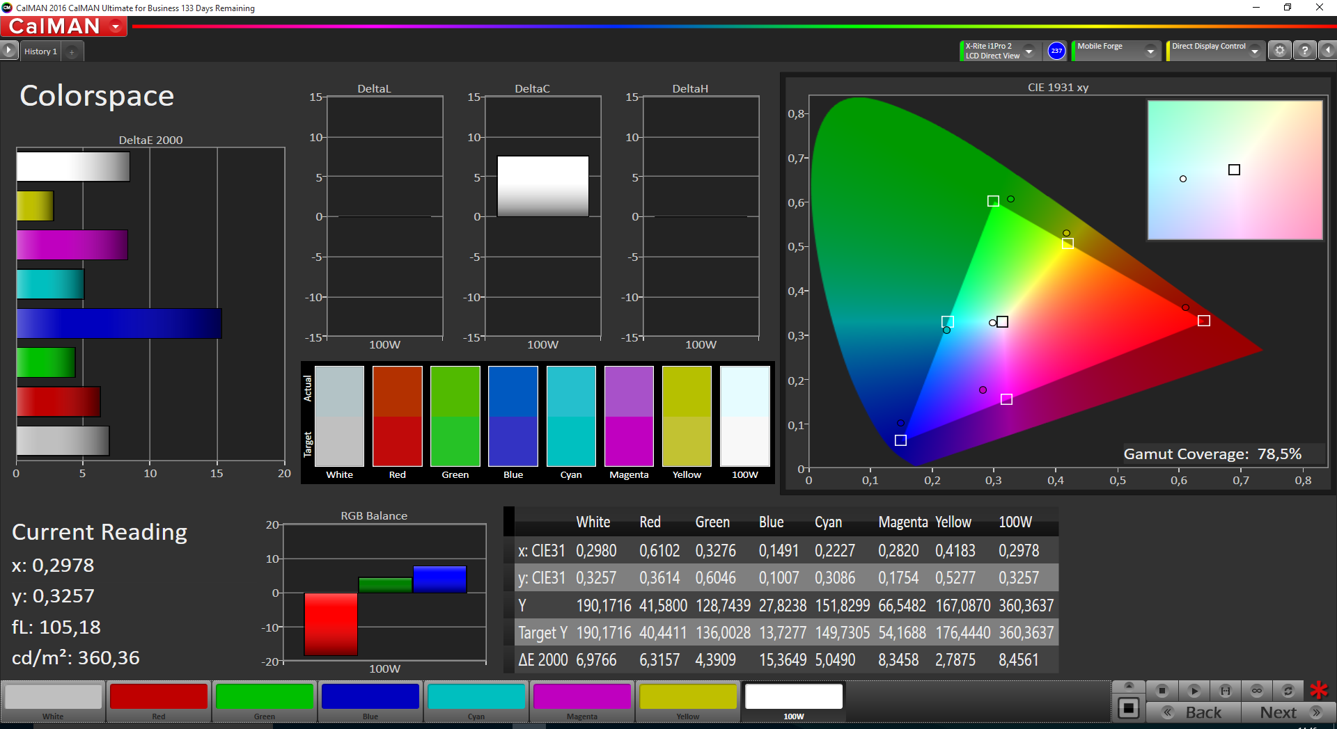 | Delta E Colorchecker * | 5.8 | 4.98 14% | 7.77 -34% | 6.25 -8% | 1.67 71% | 5.58 4% |