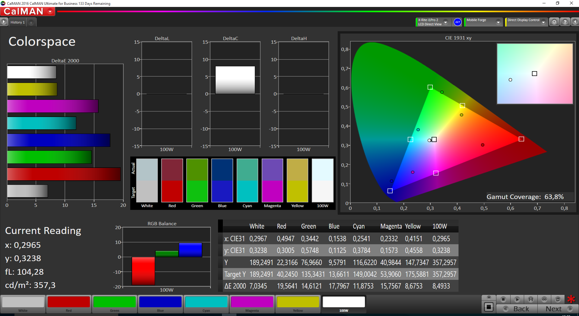 | Colorchecker dE 2000 max. * | 17.8 | 6.61 63% | ||||