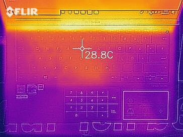 (+) Die Handballen und der Touchpad-Bereich erreichen maximal 32.8 °C und damit die typische Hauttemperatur und fühlen sich daher nicht heiß an.