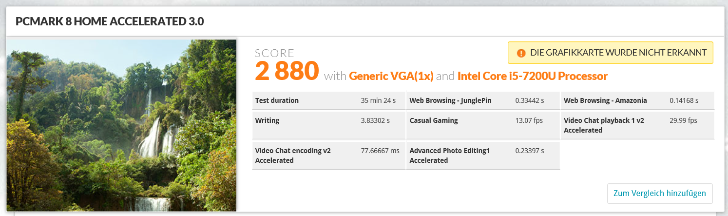 Der Stresstest besteht aus Prime95 für alle Rechenkerne der CPU und Furmark für die iGPU. Jetzt setzt Throttling ein, wobei nach 10 Minuten 1,1 bis 1,2 GHz anliegen und 700 MHz an der HD 620. Die Temperatur am SoC hat sich dabei auf 58 Grad Celsius eingependelt. Schalten wir den Furmark aus, so schnellt der Takt ganz schnell wieder auf 2,1 GHz und pendelt sich langfristig bei 2,9 GHz ein.