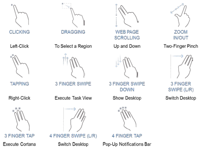 Leider leidet das ClickPad an dem üblichen Phänomen: Durch die Aufhängung des Pads im oberen Bereich ist der Hubweg unten größer als in der Mitte und oben fast nicht mehr vorhanden. Durch den bauartbedingten knappen Hubweg von geschätzt einem knappen Millimeter (aber nur ganz unten, oben weniger) ist das haptische Feedback des Klicks äußerst schwach. Der Druckpunkt kommt dabei kaum noch zur Geltung. Hier kommt keine Begeisterung auf, sofern der Klick denn überhaupt genutzt wird, schließlich unterstützt das Pad die Windows 10 Four-Point Multi-Touch Gestures. So kann z. B. das allgemeine Konfigurationsmenü durch das Auflegen von vier Fingern aufgerufen werden.