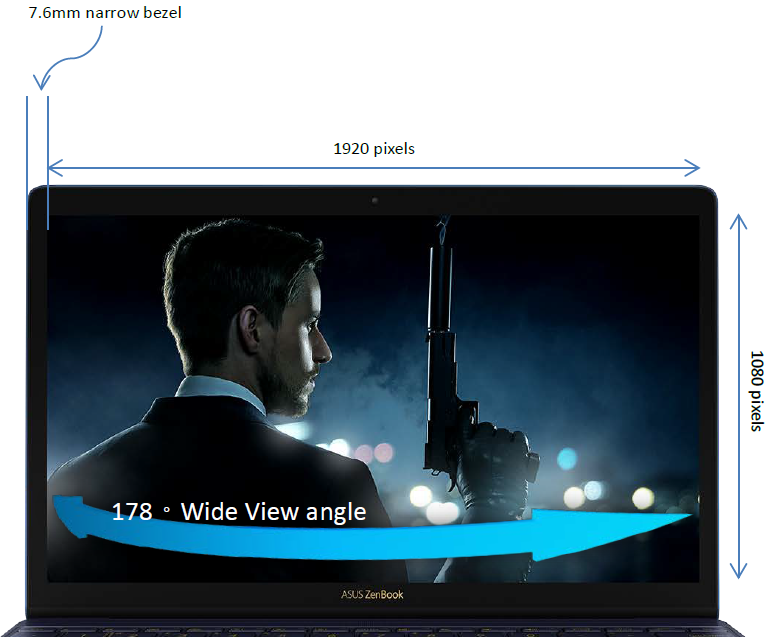 Dennoch müssen wir die Festigkeit loben: Trotz einer gewissen Flexibilität, die beim Hantieren mit den Händen deutlich wird, ist die Base für die geringe Bauhöhe sehr verwindungsfest. Wir können die Base an den Ecken als auch an denen des Displays umfassen und das UX360 in die Höhe heben. Es kommt nicht zum Verbiegen. Beim Deckel wird dies durch die Alu-Schale als auch durch die flächige Beschichtung mit Gorilla Glas 4 erreicht (0,4 mm). Dies war für die Stabilität wohl nötig, denn die schlanke Einfassung ist gerade mal 7,6 mm breit. Das Verhältnis zwischen Bildschirm und Gehäuse liegt laut Asus bei 82 Prozent.