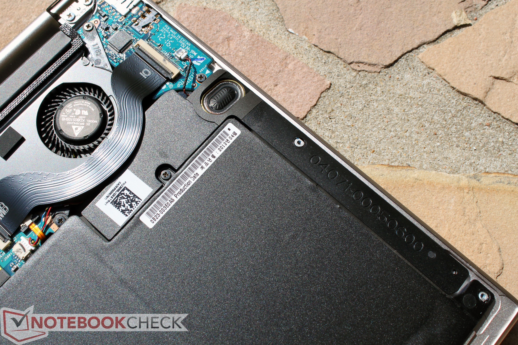 Nach dem Entfernen der Wartungsklappe an der Unterseite des Notebooks kann man gut die beiden integrierten Speaker einsehen. Die Membranen ähneln optisch jenen im UX32VD, die Resonanzkörper sind allerdings aufgrund der unterschiedlichen Gehäuseform und des abeichenden Akkupacks anders gestaltet. Hier sehen wir wiederum eine Ähnlichkeit zum Vorgänger UX31, der wiederum andere Membranen verbaut hatte.