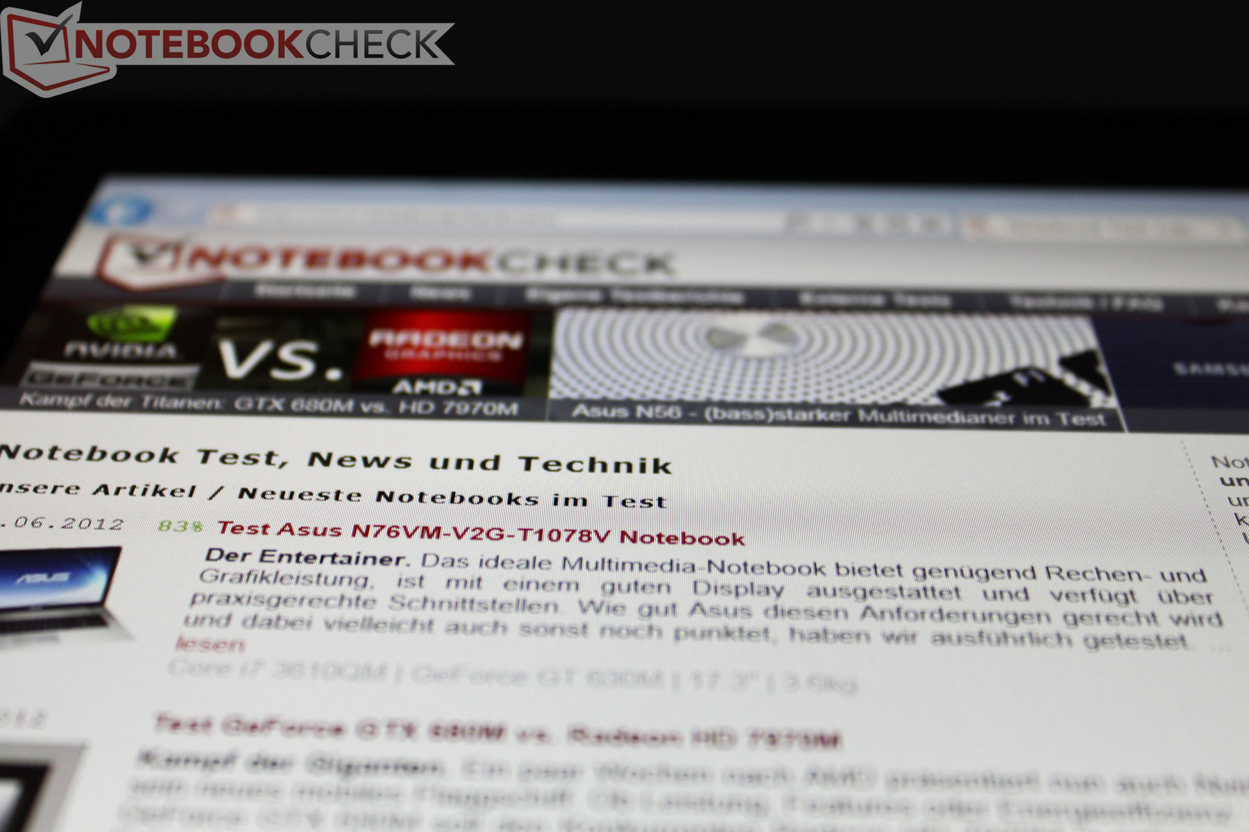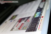 Das auch im Freien nach Lust und Laune gesurft und gearbeitet werden kann, das ermöglicht die matte Displayoberfläche in Verbindung mit der hohen Helligkeit, die auch im Akkubetrieb im vollen Umfang zur Verfügung steht. Selbst bei direkter Sonneneinstrahlung bleibt das dargestellte Bild gut lesbar, Spiegelungen werden auf ein problemlos verkraftbares Minimum reduziert.