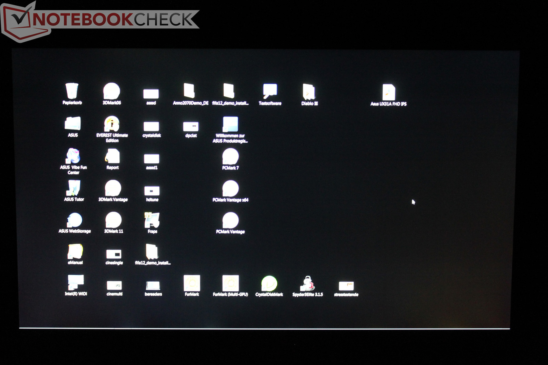 Mit einer überaus guten Helligkeit von rund 375 cd/m², einer guten Ausleuchtung, dem niedrigen Schwarzwert und folglich dem hohen Bildkontrast bleibt kein Raum für Kritik. Zudem bietet das Panel ein mattes Finish, womit störende Reflexionen und Spiegelungen erfolgreich verhindert werden und das Gerät auch im Freien bedenkenlos eingesetzt werden kann. Der Paneltypus IPS ermöglicht zudem extrem flache Blickwinkel ohne beeinträchtigende Veränderungen des dargestellten Bildes. Auch dies trägt zur Mobilität des UX31A bei.