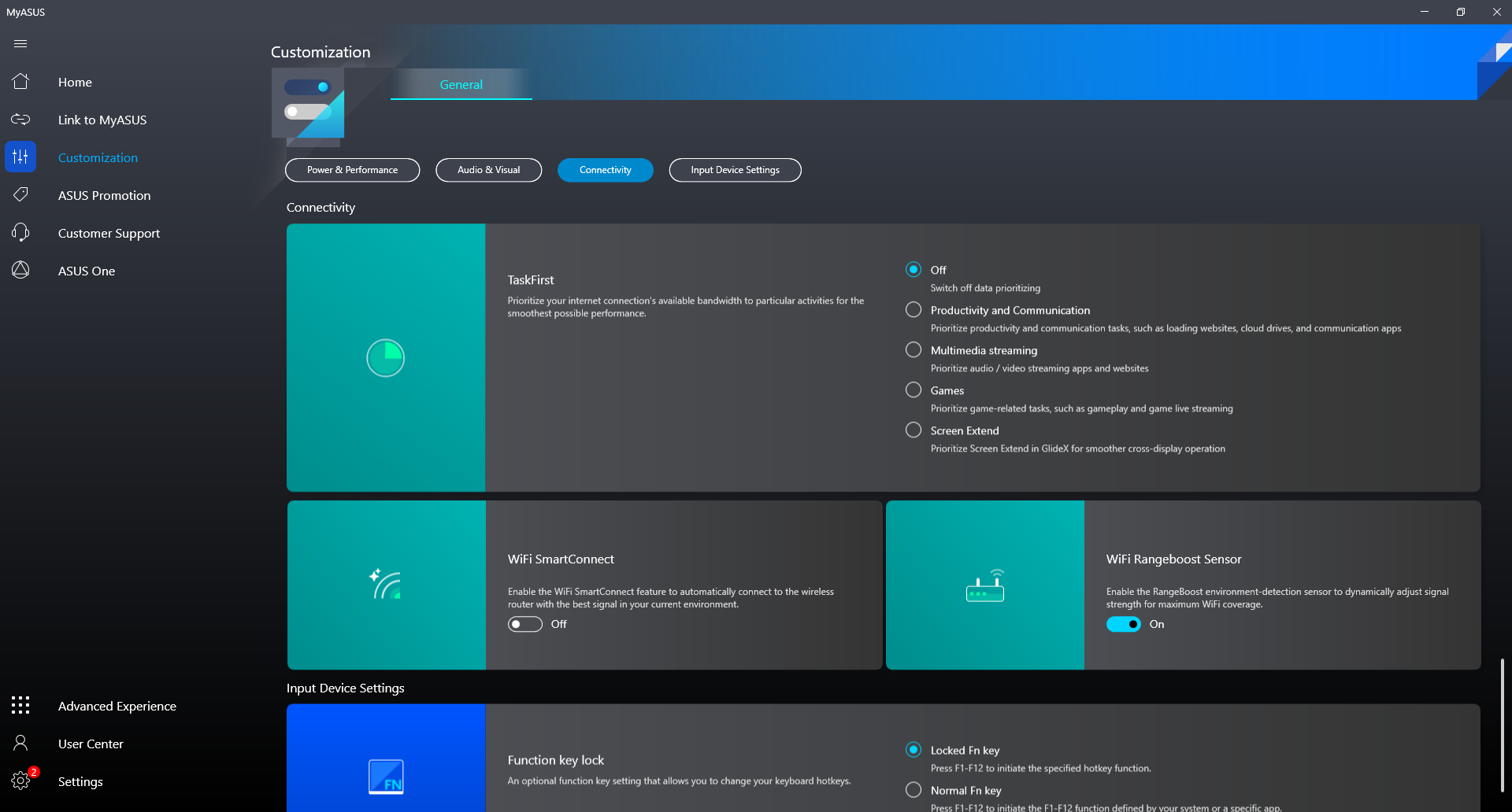 Man sollte beachten, dass die Pulsweitenmodulation auf allen Helligkeitsstufen von 0 bis 49 % Helligkeit mit einer Frequenz von 490 Hz und ab 50 % mit einer Frequenz von 60 Hz aktiv ist. Die MyAsus-Software bietet einen Schieberegler, mit dem man die maximale Helligkeit des Displays unabhängig von der normalen Windows-Helligkeitssteuerung beschränken kann, um das Displayflackern zu reduzieren.