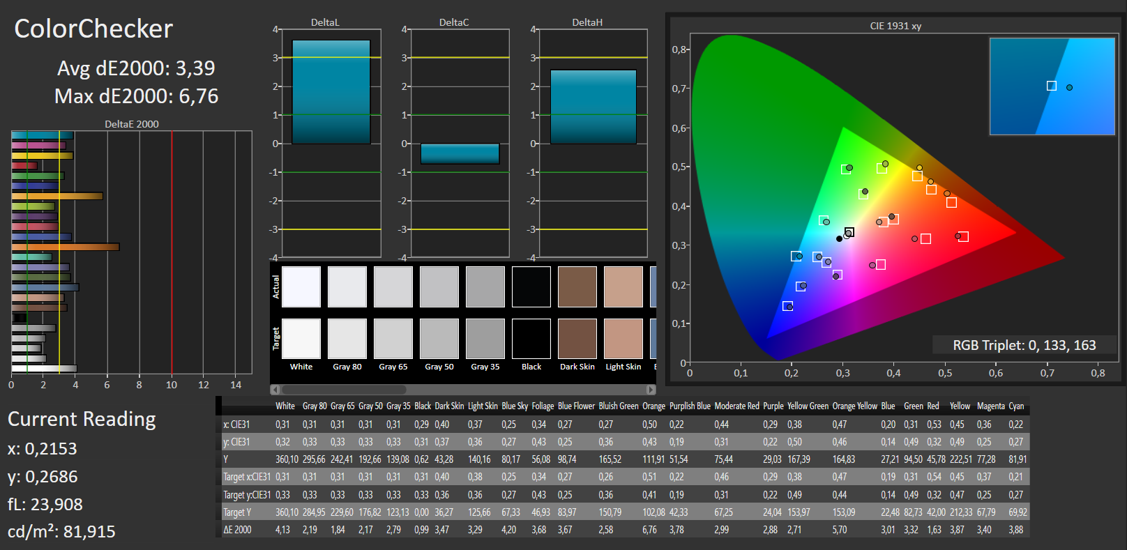 ΔE ColorChecker Calman: 3.39 | ∀{0.5-29.43 Ø4.78}
