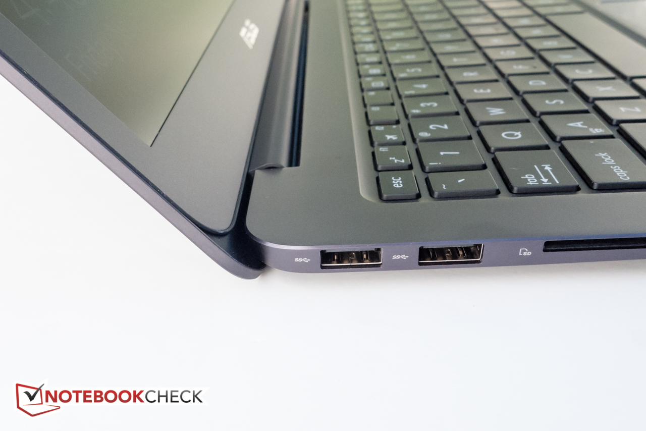 In unserem Test des Vorgängers merkten wir an, dass das UX305 für ein super-schlankes Subnotebook mit drei USB-3.0-Ports und micro-HDMI vergleichsweise gut ausgestattet ist. Ein Intel Dual Band Wireless AC 7265 Modul erledigt die kabellose Kommunikation, doch während die vorige Generation mit einem USB-auf-Ethernet-Dongle ausgeliefert wurde, lag ein solcher bei unserem Testmodell nicht mehr bei. Möglicherweise hat Asus sich aus Preisgründen dazu entschlossen, das Chassis nicht mit einem neuen USB 3.1 Typ-C-Port zu aktualisieren, was sehr schade ist. Wir wären schon mit einem, der nur USB-3.0-Geschwindigkeit (Gen 1) unterstützt, glücklich gewesen. Dagegen verfügt Dells XPS 13-9350 nun über einen Thunderbolt 3 / USB 3.1 Typ-C Gen 2 Port (bis zu 10 Gbps bi-direktionale Transferrate). Obwohl es sich nicht um ein schwerwiegendes Versäumnis handelt, mag es einige User vom Kauf abhalten, die ein zukunftssichereres Notebook suchen oder schon ein Handy mit der neuen Schnittstelle besitzen.