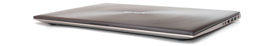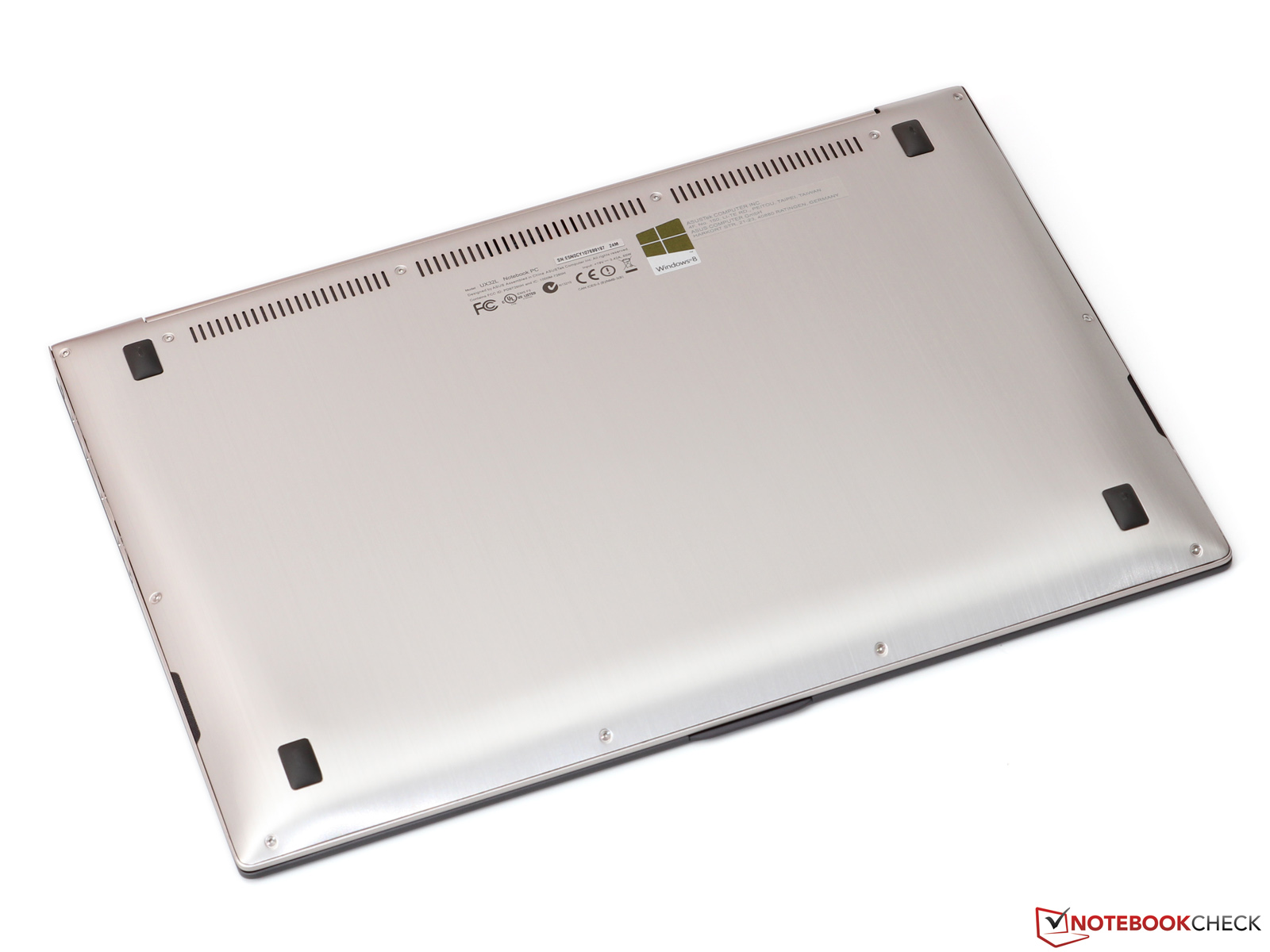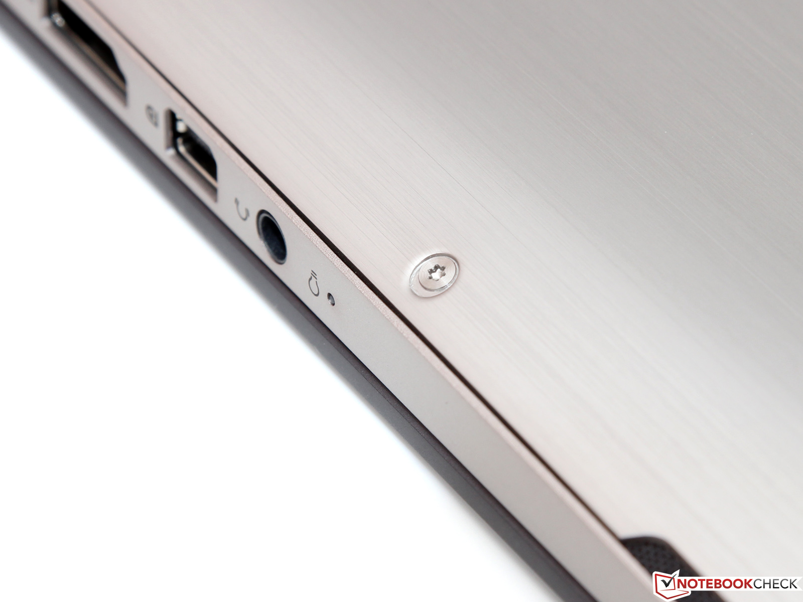 Da Asus die Außenhülle des Chassis aus einem einzigen Block Aluminium herausfräst (darunter befindet sich eine Grundkonstruktion aus Kunststoff), können wir kaum störende Spaltmaße oder Materialübergänge entdecken. Ein weiterer Vorteil der massiven Bauweise: Selbst bei kräftigem Druck gibt das Gehäuse an keiner Stelle nennenswert nach. Dies gilt ebenso für das Display, welches trotz extrem dünner Bauweise jeglichen Verwindungsversuchen bravourös widersteht.