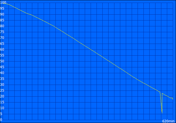 Da die Performance im Akkubetrieb nicht künstlich gedrosselt wird, kann der Anwender auch unterwegs das ein oder andere 3D-Spiel wagen. Naturgemäß hält der Energiespeicher unter diesen Bedingungen nur relativ kurz durch – nach etwas über 2 Stunden im Battery Eater Classic Test (Höchstleistung, maximale Helligkeit, Funk an) sind die letzten Reserven erschöpft. Etwa die gleiche Zeit vergeht, bis der Akku wieder vollständig geladen ist.
