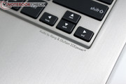 Für ungünstig erachten wir die schmalen Lausprecheröffnungen an den Seitenkanten. Sitzt man direkt vor dem Notebook wird der Sound hörbar durch die Handballenablagen abgeschirmt. Neben dem Notebook sitzend ist das Klangerlebnis deutlich besser.