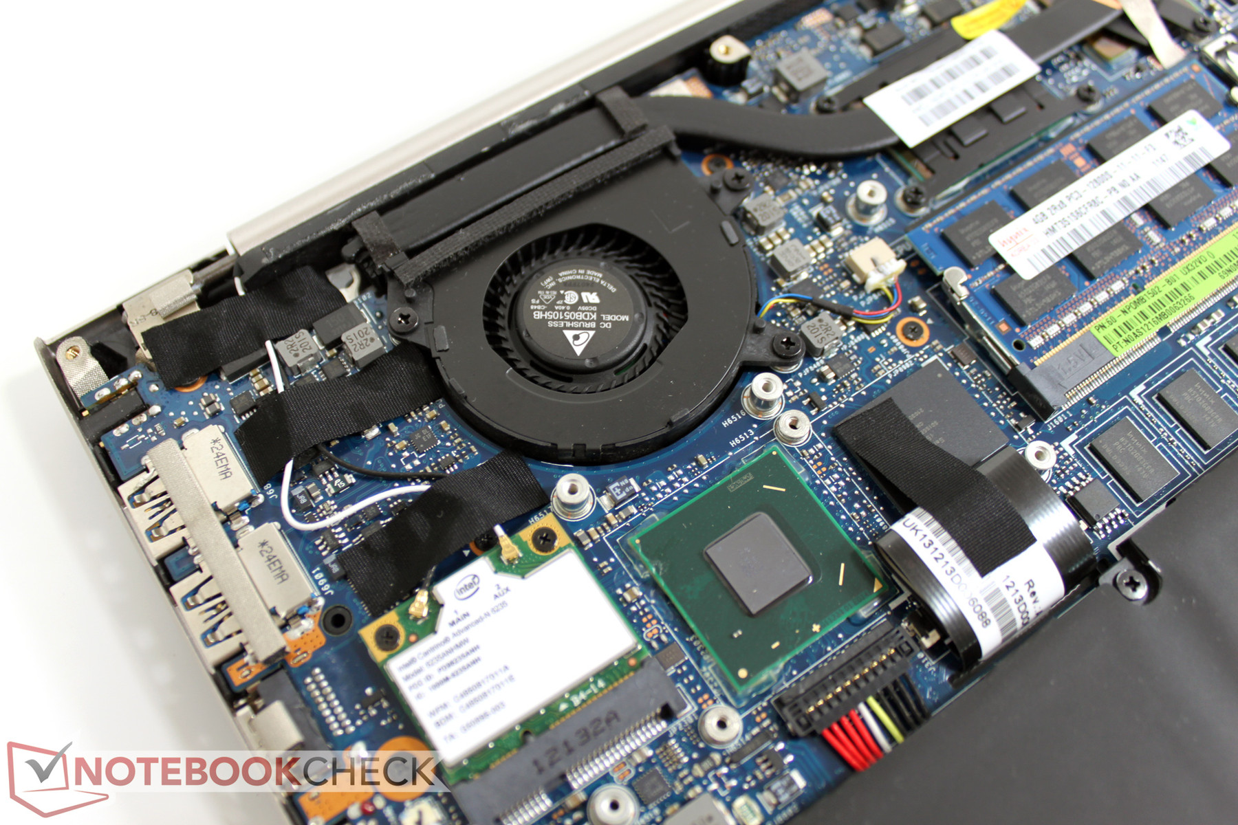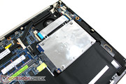 Ultrabook-untypisch lässt das Asus UX32VX den User bis in seine intimsten Bereiche vor - vorausgesetzt ist aber das passende Werkzeug. Nach Abnehmen der Bodenplatte kann problemlos der Akku, Festplatte oder der RAM-Riegel entfernt bzw. gewartet werden. Auch die extrem flachen Lüfter (5 Millimeter) können entfernt werden und so gut gereinigt werden.