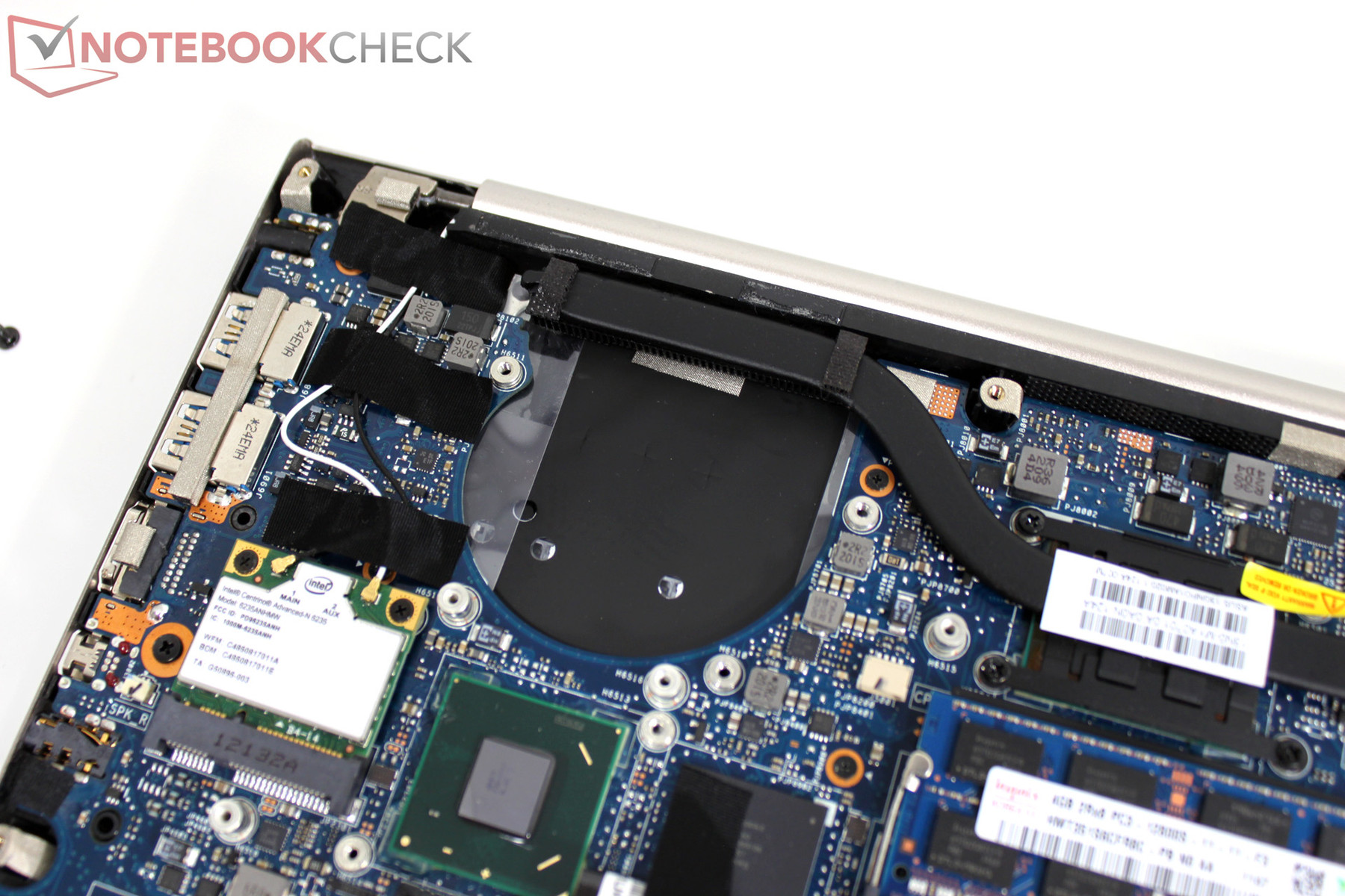 In Zahlen ausgedrückt sprechen wir hier von 28-30.2 dB(A) im Office Betrieb bis hin zu 39.3-44.6 dB(A) unter Last. Dann reizen sowohl die integrierte ULV-CPU von Intel (Turbo Boost) als auch die dedizierte Grafikkarte von Nvidia die Kühlreserven voll aus. Ohne Lüfter könnte die überschüssige Hitze nicht abgeführt werden. Angesichts der gebotenen Leistungsreserven, insbesondere der dedizierten GPU in dem flachen Ultrabook-Gehäuse, geht dies aber in Ordnung.