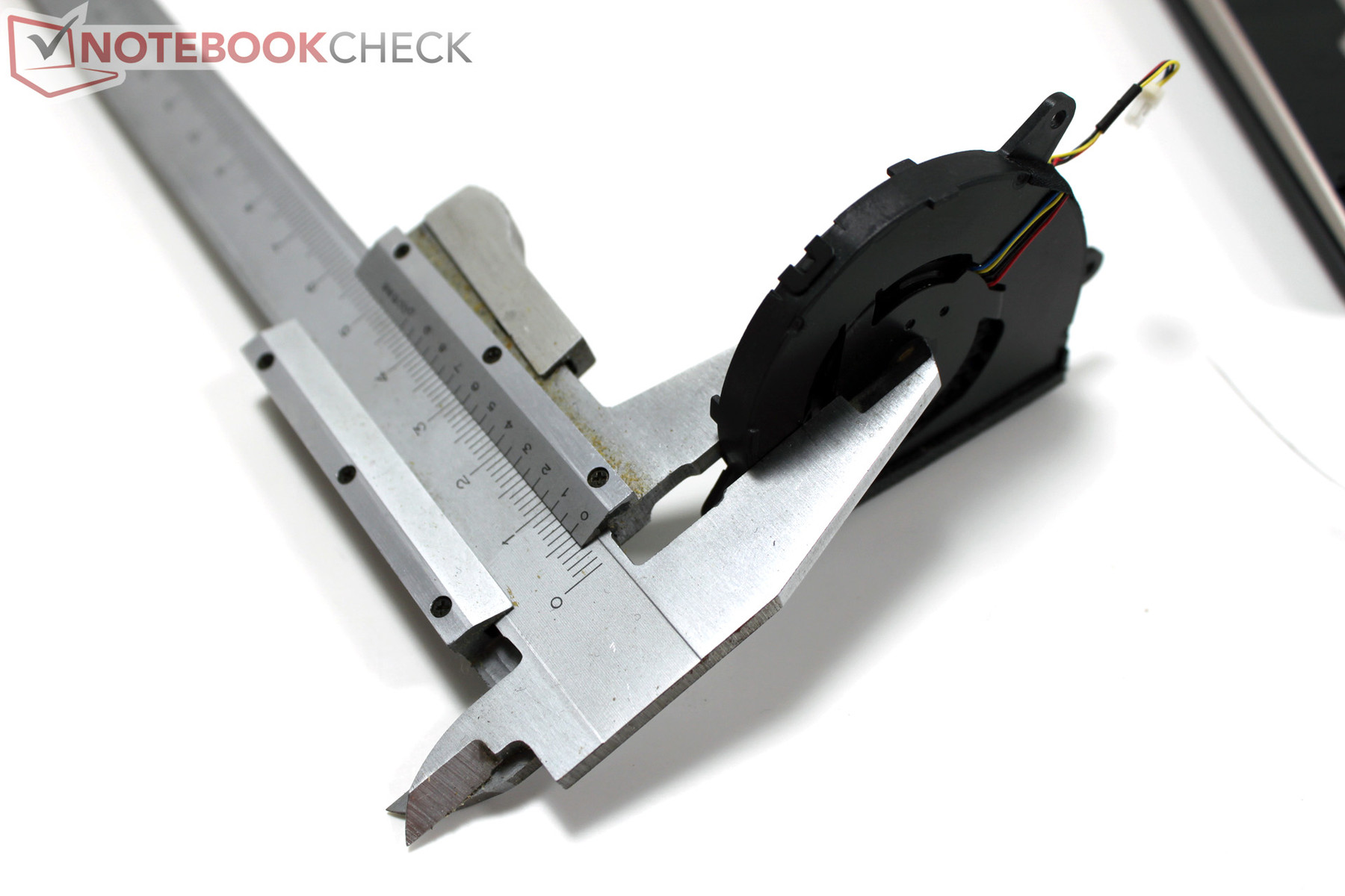 Ein Blick ins Datenblatt bringt einen weiteren marginalen Unterschied ins Spiel, die Abmessungen bzw. das Gewicht. Asus gibt für das UX31A eine etwas kleinere minimale Bauhöhe von 3 Millimetern an während sich das UX32 nach vorne hin "nur" auf 5.5 Millimeter verjüngen soll. Wir messen nach und stellen hier einen noch geringeren Unterschied fest: 4 Millimeter beim UX32VD.