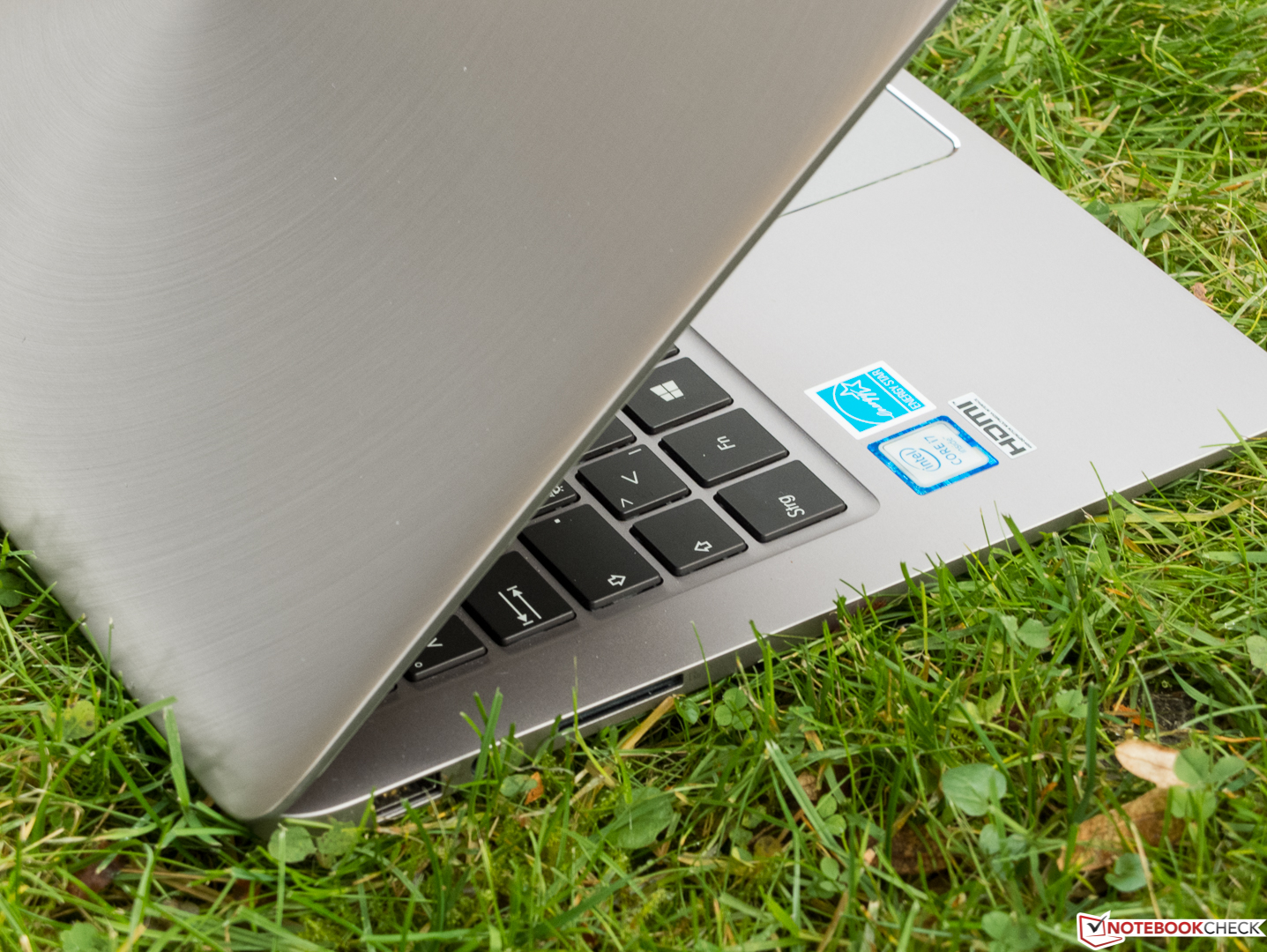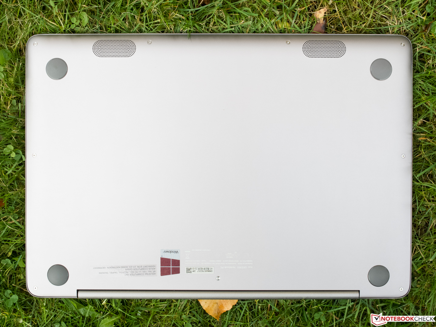 Nachdem wir beim Convertible-Bruder Asus Zenbook Flip UX360UA massive Probleme mit dessen neu konzipierten Scharnieren hatten, kommt hier wieder eine bewährte Konstruktion zum Einsatz. Die ermöglicht trotz des geringen Gewichts der Base einhändiges Öffnen, schwingt bei ruckartigen Bewegungen aber auch einige Sekunden nach. Der maximale Öffnungswinkel, der bei den meisten Notebooks etwa 135 ° beträgt, fällt hier 15 bis 20 ° geringer aus. In Sachen Verarbeitung leistet sich Asus keine relevanten Schnitzer, nur die Bodenplatte sitzt in zwei der Ecken nicht ganz passgenau, sodass sich schmale Spalte auftun. Das ändert aber nichts am insgesamt sehr soliden und edlen Eindruck, den das Gehäuse im Test hinterlassen hat.