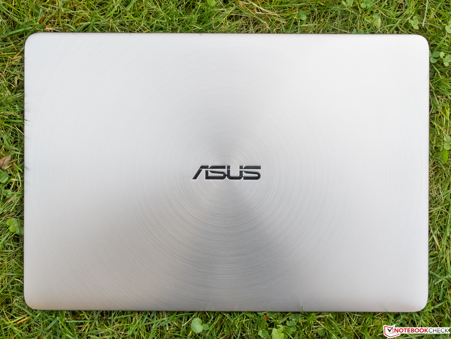 Unverkennbare Merkmale aller Zenbooks sind eine im Verhältnis zur Bildschirmdiagonalen dünne und leichte Bauweise, ein Aluminiumgehäuse mit kühler Haptik, abgerundete Ecken sowie natürlich der konzentrische Kreismuster-Schliff auf der Deckelrückseite, in dessen Mitte das silberne Asus-Logo prangt. Die anderen Oberflächen sind alle in mattem Silber gehalten und erweisen sich als komplett unempfänglich für Fingerabdrücke. Auch mit etwas Kraft lässt sich die Base nur in engen Grenzen verwinden und gibt dabei fast keine Geräusche von sich. Etwas flexibler präsentiert sich der dünne, weitgehend druckresistente Deckel. Unterhalb der Tastatur lässt sich die Base recht leicht etwas eindrücken.