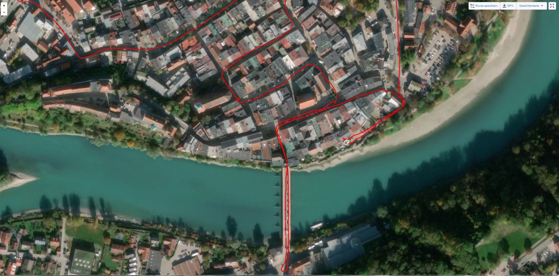 Für unseren Praxistest in Sachen Ortung schwingen wir uns aufs Fahrrad und nehmen die Smartwatch Garmin Venu 2 als Vergleichsgerät mit. Kleinere Ungenauigkeiten leistet sich das Zenfone 10 dabei durchaus, so platziert es uns mal leicht neben der Straße oder lässt uns vermeintlich durch Häuser fahren. Im Großen und Ganzen gefällt uns die Genauigkeit aber. Für den alltäglichen Einsatz als Navigationsgerät ist das Handy gut geeignet, solange man keine absolute Präzision verlangt.