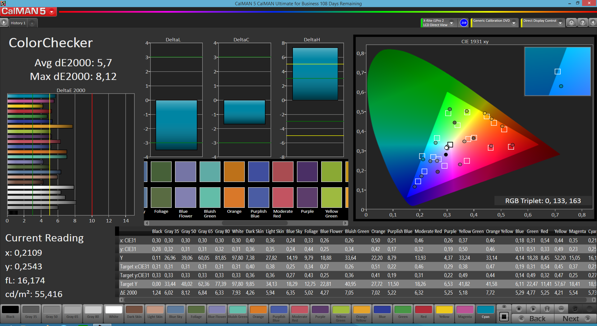 ΔE ColorChecker Calman: 5.7 | ∀{0.5-29.43 Ø4.78}
