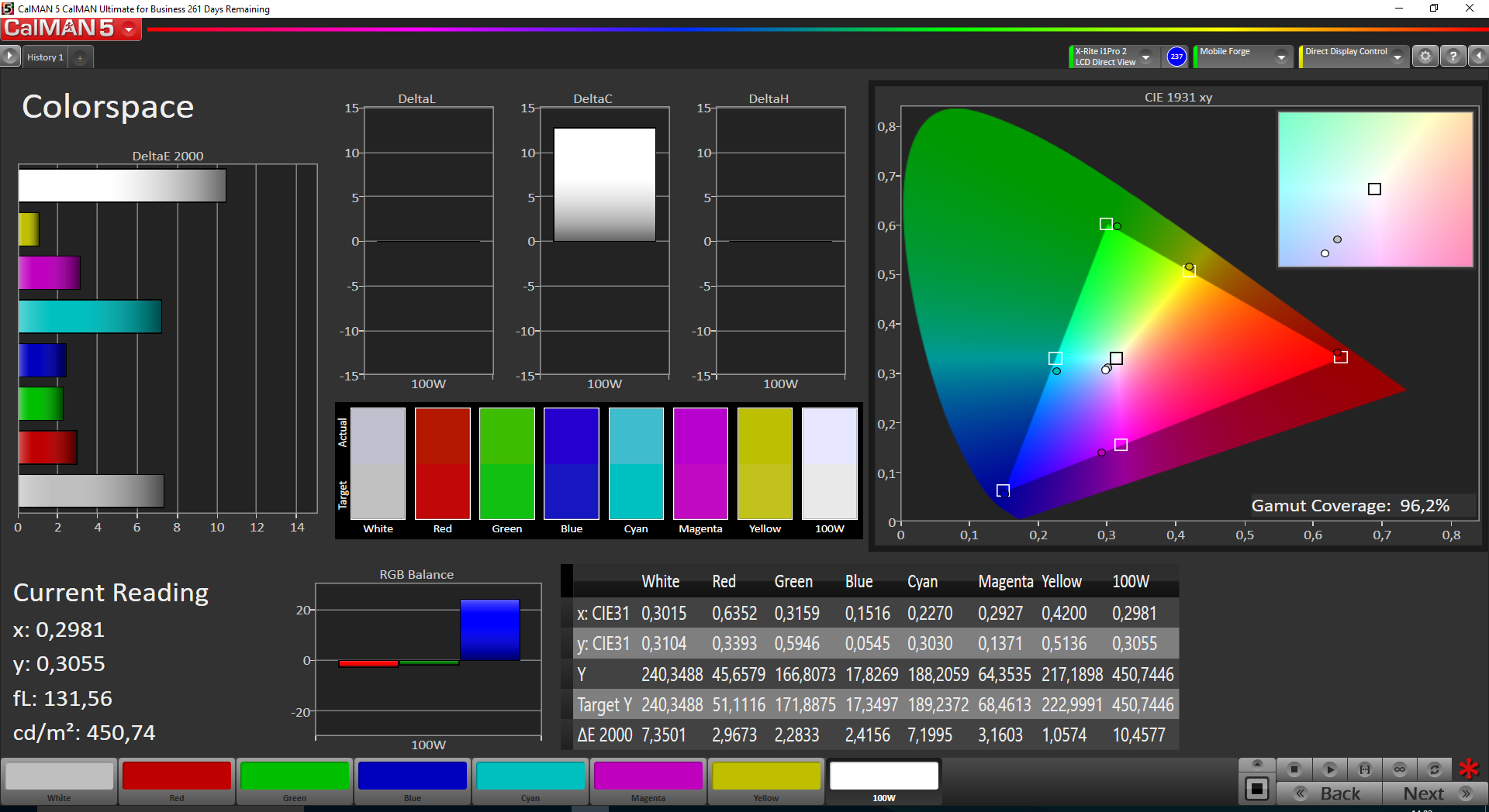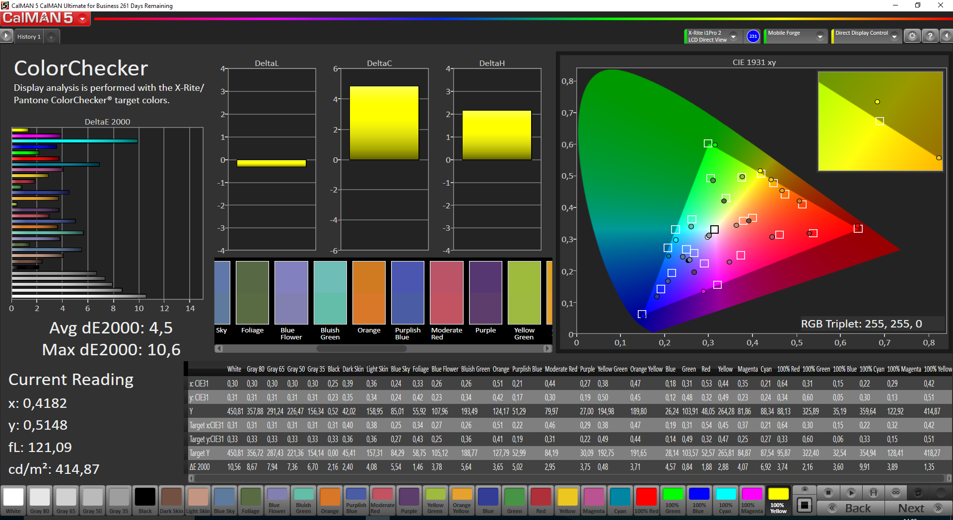 ΔE ColorChecker Calman: 4.5 | ∀{0.5-29.43 Ø4.78}