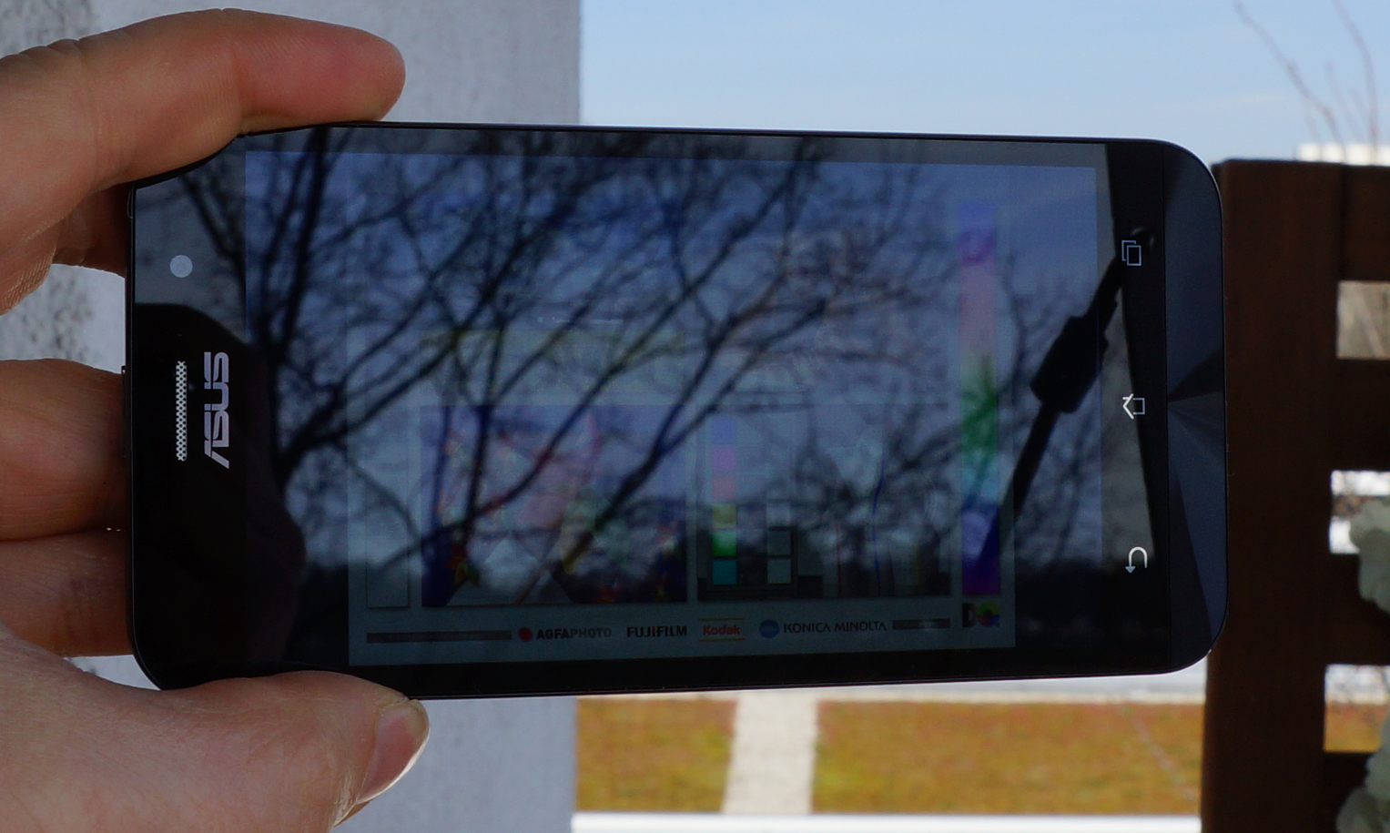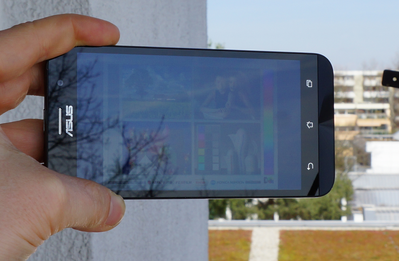 Mit 5 Zoll Bildschirmgröße und einer Auflösung von 1.280 x 720 Pixel ist das Zenfone Go unter den Testgeräten in guter Gesellschaft, nur das Huawei P8 lite (2017) bietet einen Full-HD-Screen. Bei unserem Testgerät leuchtet der Bildschirm im Durchschnitt 452 cd/m² hell, was ebenfalls dem Klassendurchschnitt entspricht. Mit 84 Prozent ist die Ausleuchtung nicht sonderlich gleichmäßig: Hält man das Smartphone quer, so ist im oberen linken Bereich der Bildschirm um 76 cd/m² dunkler als unten rechts. Dadurch wirken große Farbflächen auch sichtbar ungleichmäßig hell.