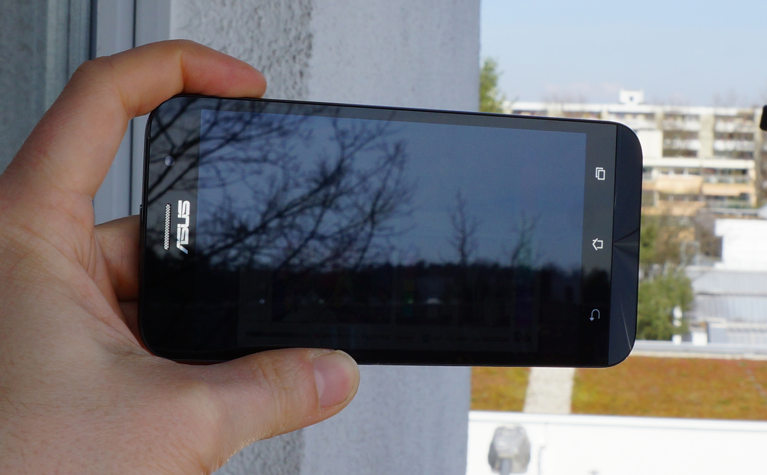 Der Touchscreen hat eine gute Oberfläche und reagiert auch in den Ecken sehr zuverlässig. Es gibt in der Software zahlreiche Bedienhilfen für Menschen mit körperlichen Einschränkungen, und mit ZenMotion sind auch ein Einhandmodus sowie mehrere Bewegungen und Gesten als Bedienmittel integriert. So kann man beispielsweise Doppeltippen zum Aufwecken des Telefons, Buchstaben zeichnen, um gewisse Apps zu starten oder das Gerät umdrehen, um es stumm zu schalten.