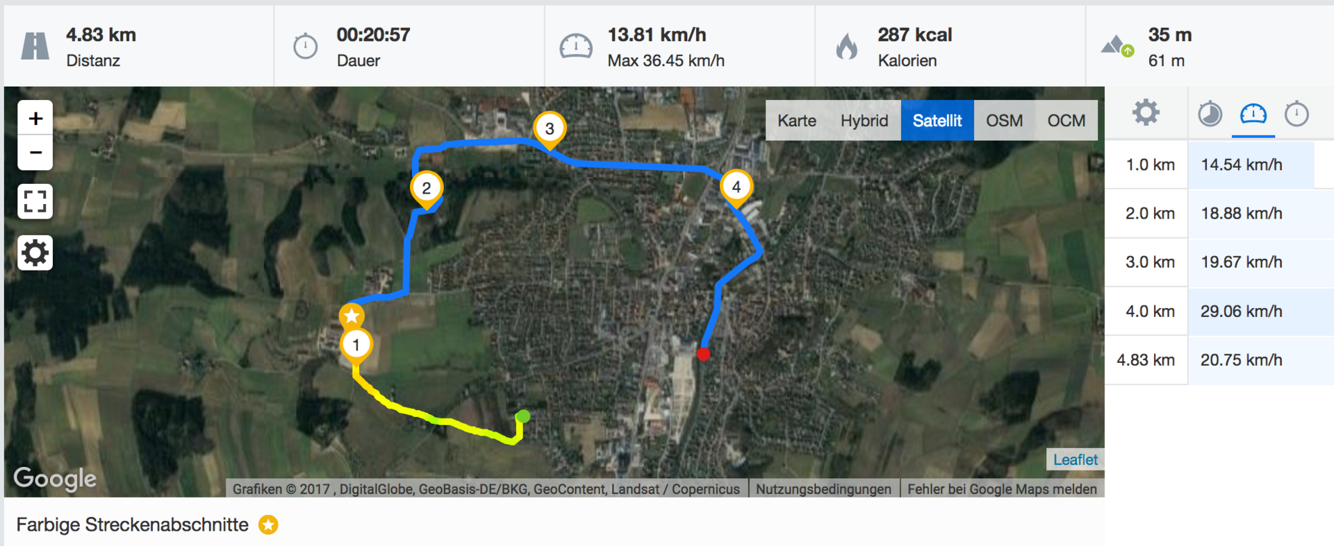 Im Praxistest, bei dem wir das Testgerät und das Profi-Navi Garmin Edge 500 zu einer Ausfahrt mit dem Fahrrad mitnehmen, verliert das Zenfone Go leider bei 4,8 Kilometer Strecke den Kontakt zu den Satelliten und stellt ihn auch nicht wieder her. Das Profi-Navi misst die Strecke korrekt zuende. Das ist schade, denn die Durchfahrt durch den Wald hatte das Testgerät gar nicht so schlecht gemeistert. Insgesamt scheint das Modul aber recht anfällig für Störungen zu sein und so sollte man sich überlegen, ob man sich auf das Zenfone Go als Navigations-Gerät verlassen will.