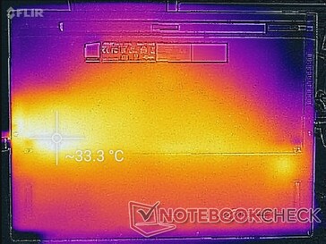 (+) Die Handballen und der Touchpad-Bereich erreichen maximal 33.4 °C und damit die typische Hauttemperatur und fühlen sich daher nicht heiß an.