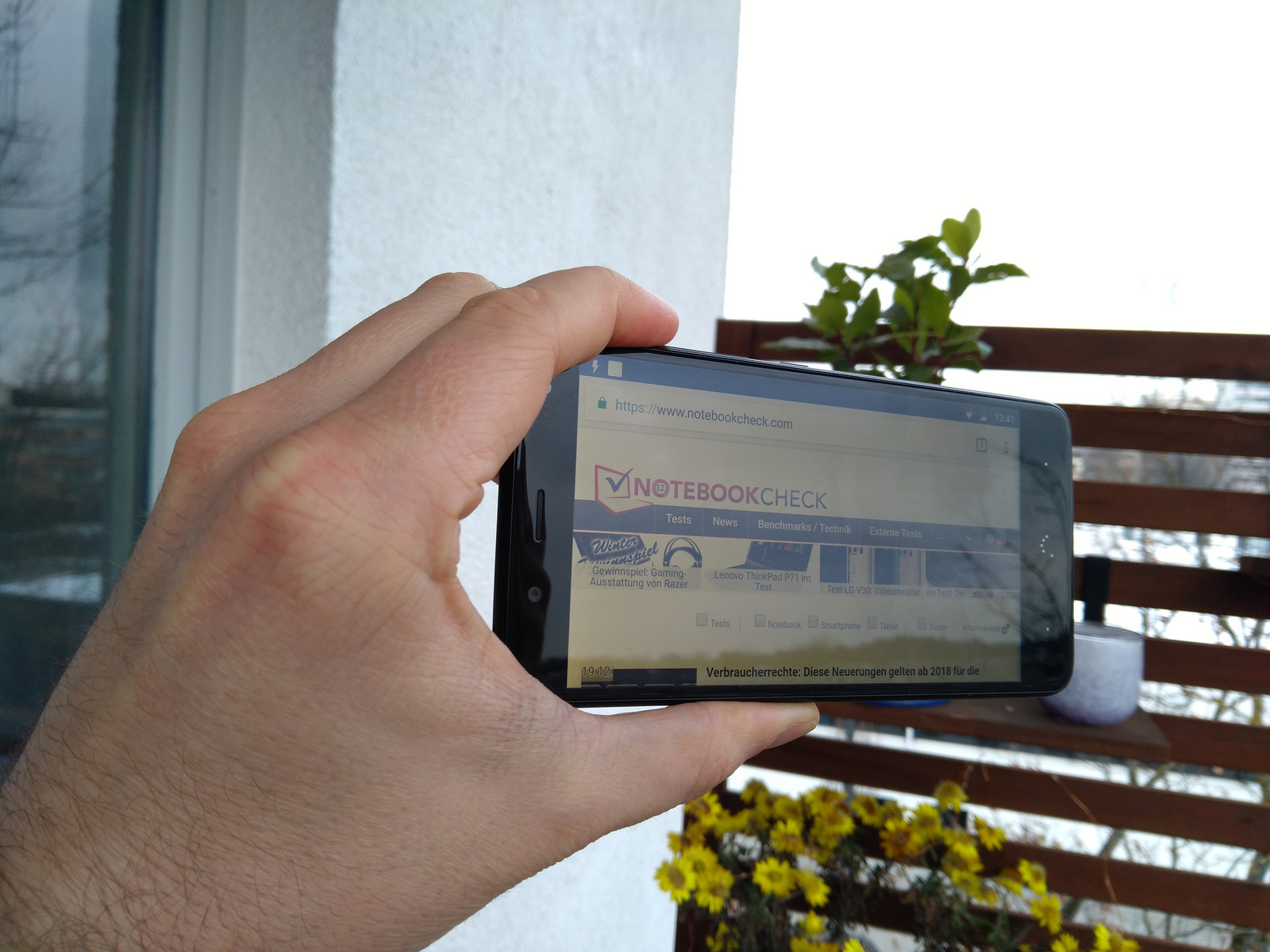 Im Freien kann man das BQ Aquaris V nutzen, an bewölkten Tagen allerdings besser als in der prallen Sonne. Der ausreichend helle Bildschirm konkurriert mit den starken Spiegelungen auf dem Screen, die es aber bei fast allen aktuellen Smartphones gibt.