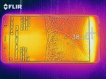 Das BQ Aquaris VS Plus erreicht an der Oberfläche ganz ähnliche Temperaturen wie das BQ Aquaris VS. Mit 38,7 °C wird es maximal noch ein bisschen wärmer als das kleinere Schwestermodell, ist ansonsten aber ähnlich unproblematisch in Sachen Temperaturen. Zwar ist die Erwärmung spürbar, man kann das Smartphone aber jederzeit bedenkenlos in die Hand nehmen.