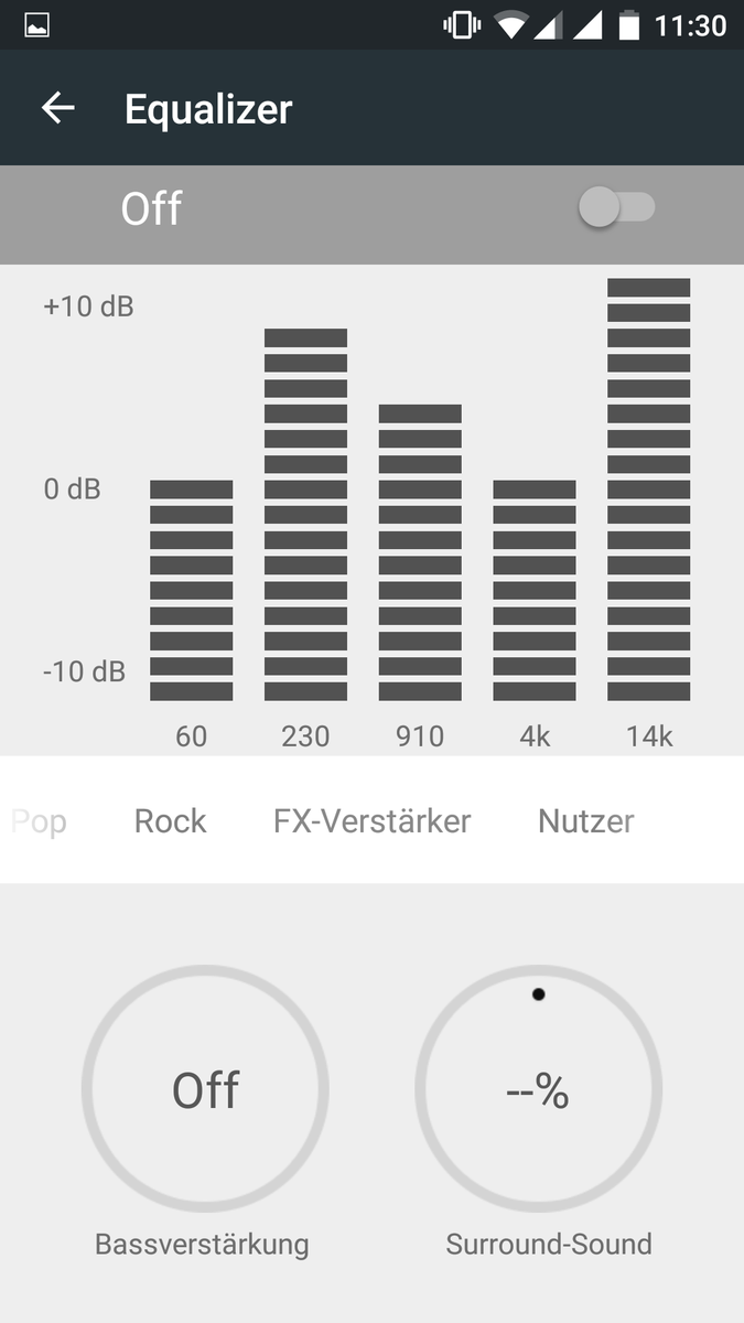 Mit 88,52 db(A) in unserem Pink-Noise-Test erreicht das Aquaris X5 Plus eine ordentliche Maximallautstärke. Im Vergleich zum Sony Xperia XA ist der Frequenzverlauf dabei deutlich gleichmäßiger, was sich subjektiv in einem für Smartphone-Verhältnisse recht runden Klang äußert – satte Bässe sind aber natürlich nicht zu hören. Bei Bedarf kann der Sound über einen Equalizer an den eigenen Geschmack angepasst werden.