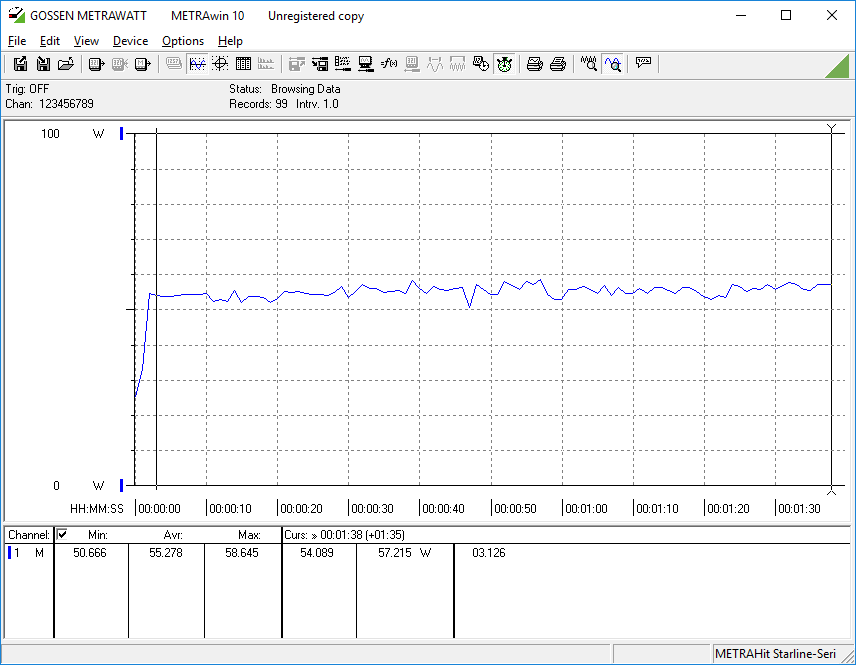 Wie unsere PCMark-Tests offenbarten war die Systemleistung im 54-W-Modus nicht nennenswert höher.