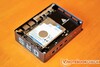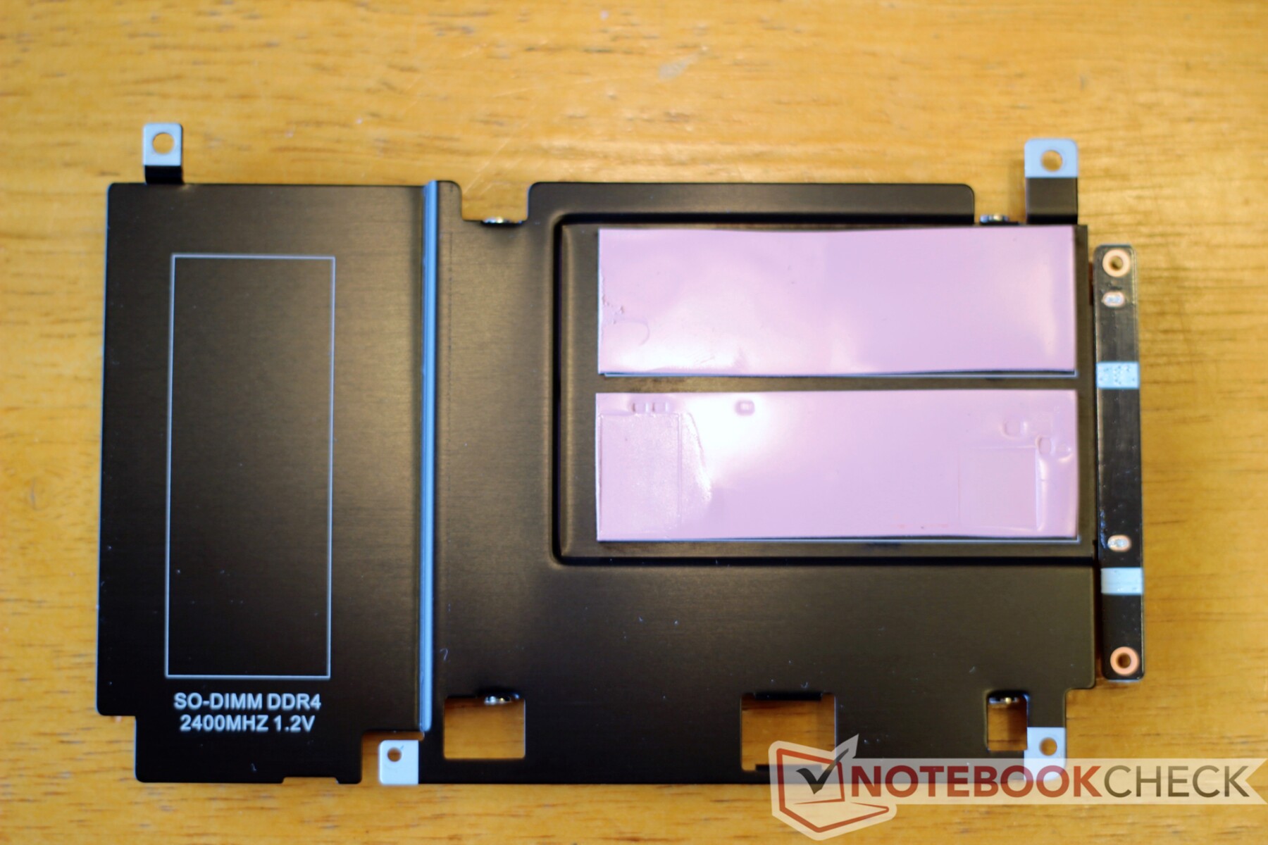 Der GT-R bietet vielfältige Upgrademöglichkeiten. Nach dem Entfernen von vier Kreuzschlitzschrauben lässt sich der Unterboden dank der integrierten Lasche problemlos entfernen. Einmal geöffnet hat man zunächst Zugriff auf den 2,5-Zoll-Schacht, der in unserem Testgerät belegt war. Der Montagerahmen lässt sich nach Entfernen von ein paar Schrauben ausbauen, was den Zugriff auf die zwei M.2-Slots und die beiden DDR4-Slots freigibt. Zu beachten ist, dass der linke der beiden M.2-Slots NVMe unterstützt, während der rechte nur per SATA III angebunden ist.