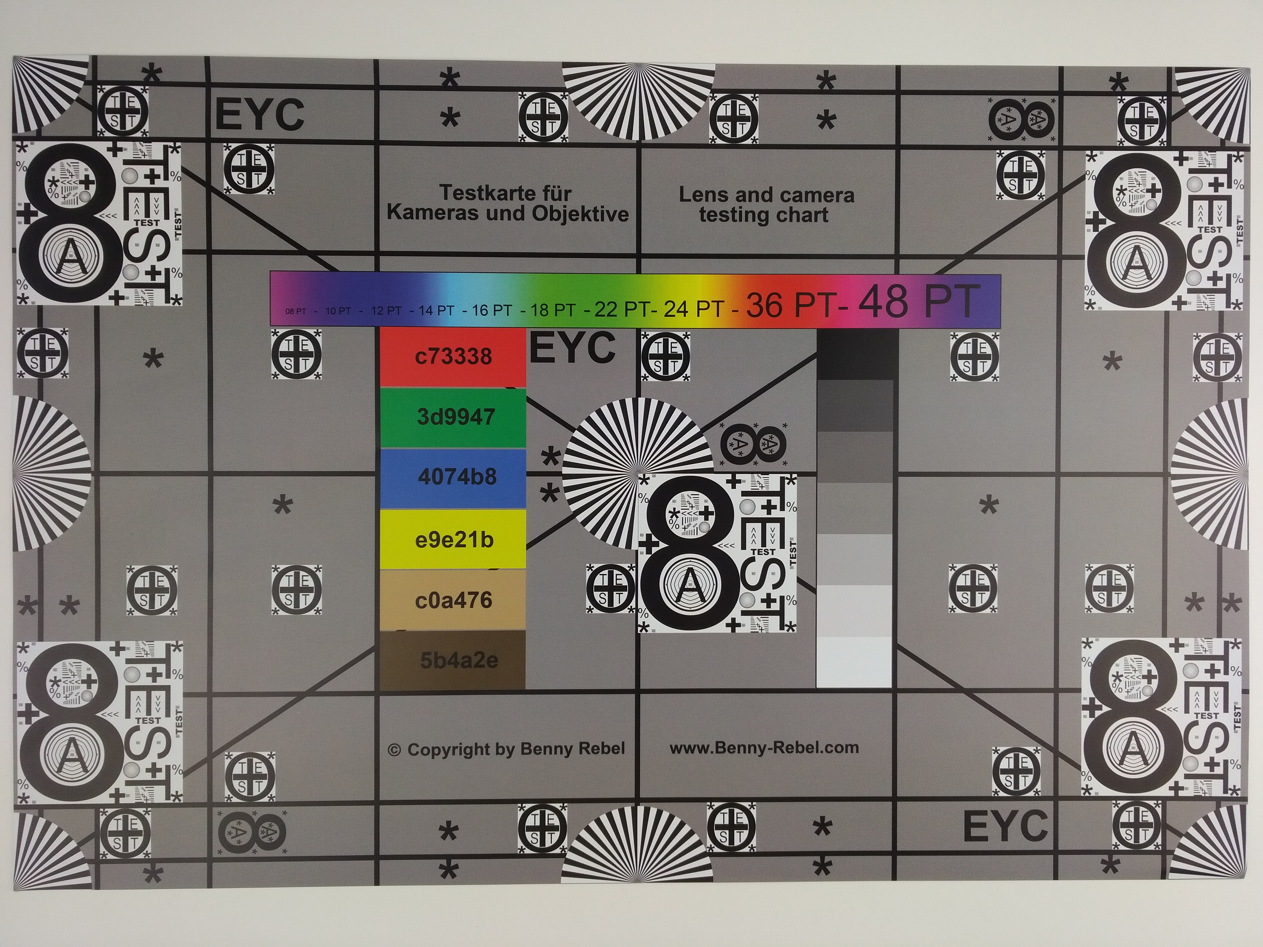 Szene 1Szene 2Szene 3Zusätzlich zu unseren Test-Schnappschüssen überprüfen wir die Schärfe und die Farben auch unter kontrollierten Testbedingungen. Dazu werden der ColorChecker Passport und unser Testchart formatfüllend fotografiert. Eine Nachbearbeitung der Bilder findet nicht statt. Farben stellt das DTEK50 etwas zu kräftig dar, während es sich bei Graustufen genau andersherum verhält. Das Testchart wird scharf abgebildet, allerdings mit deutlich sichtbarem Bildrauschen. Fairerweise muss man aber sagen, dass dies nur bei 100-prozentiger Vergrößerung wirklich sichtbar wird.