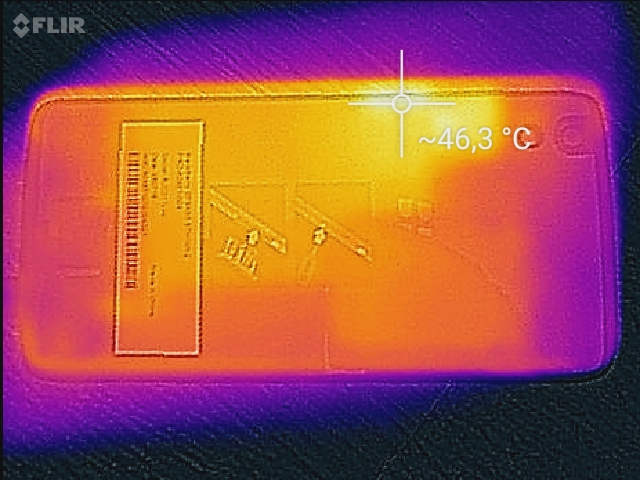 (-) Die maximale Temperatur auf der Oberseite ist 45.9 °C. Im Vergleich liegt der Klassendurchschnitt bei 35.2 °C (von 21.9 bis 247 °C für die Klasse Smartphone).