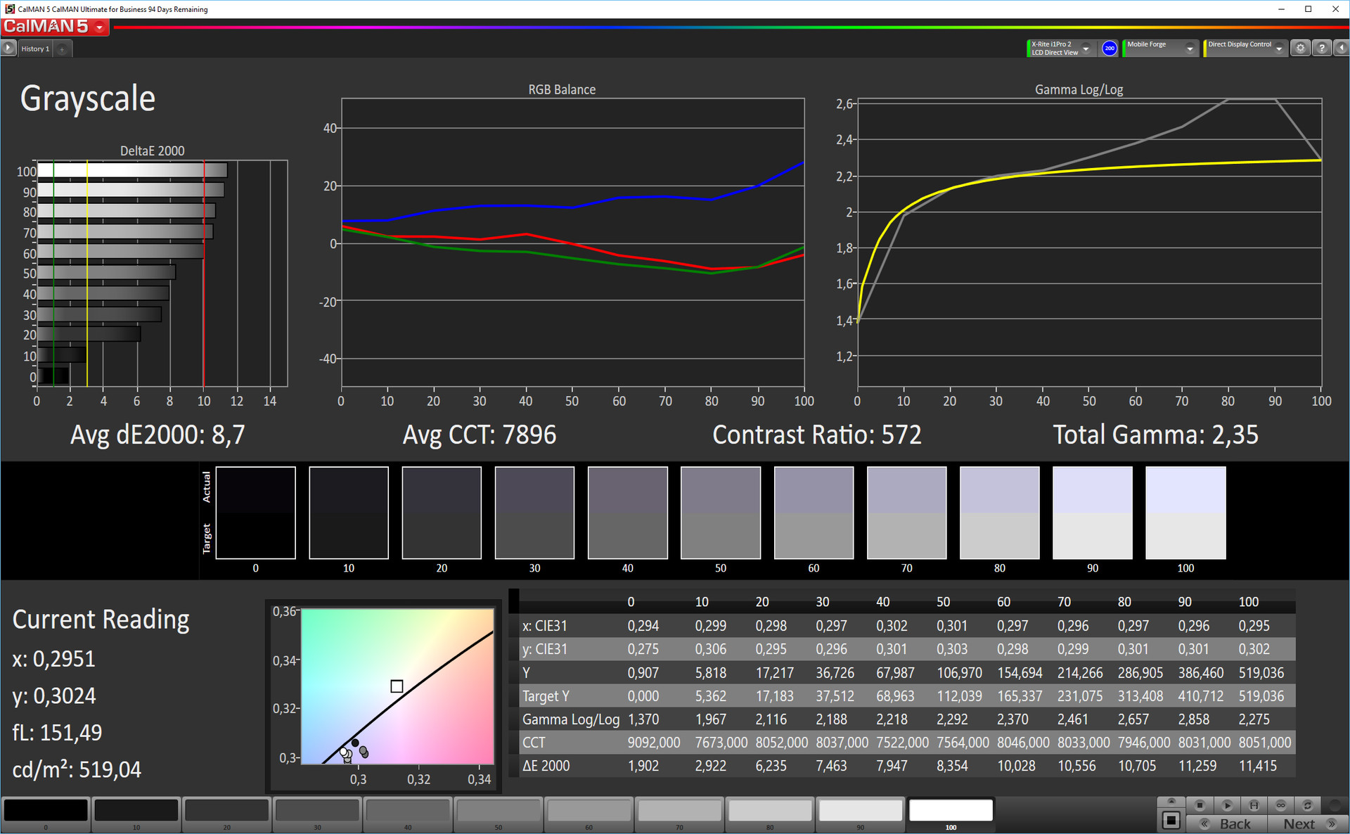 ΔE Greyscale Calman: 3.6 | ∀{0.09-98 Ø5}