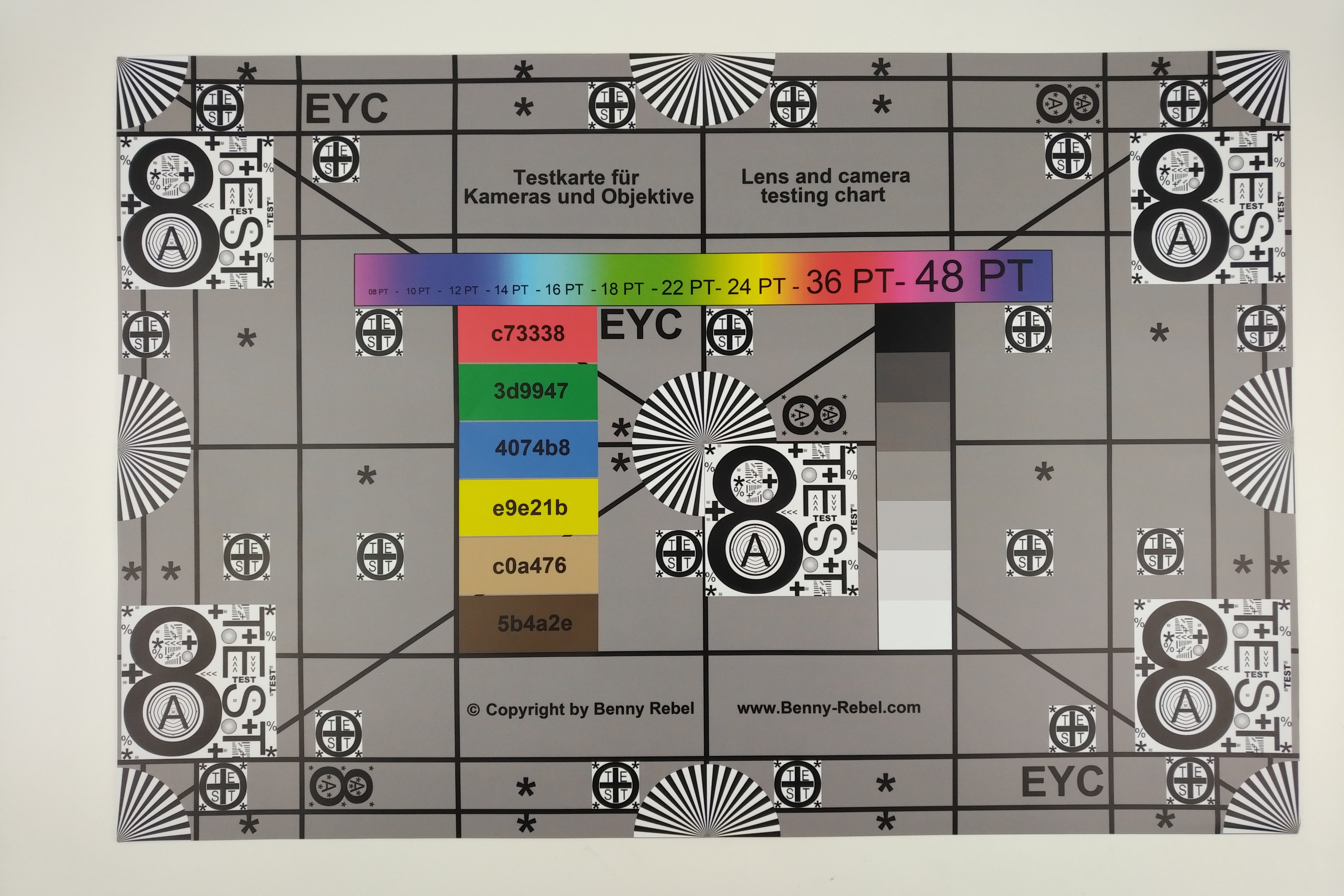 Szene 1Szene 2Szene 3Bei den Aufnahmen unter kontrollierten Testbedingungen zeigt sich die im Detail etwas verringerte Schärfe. Flächen wirken außerdem leicht verrauscht. Text vor rotem Hintergrund wirkt etwas unscharf, auch zu den Rändern hin zeigt sich eine leichte Unschärfe. Insgesamt betrachtet sind diese Unschärfen nicht nur im Detail sichtbar: Die Bilder wirken auch in der Verkleinerung noch leicht unscharf.