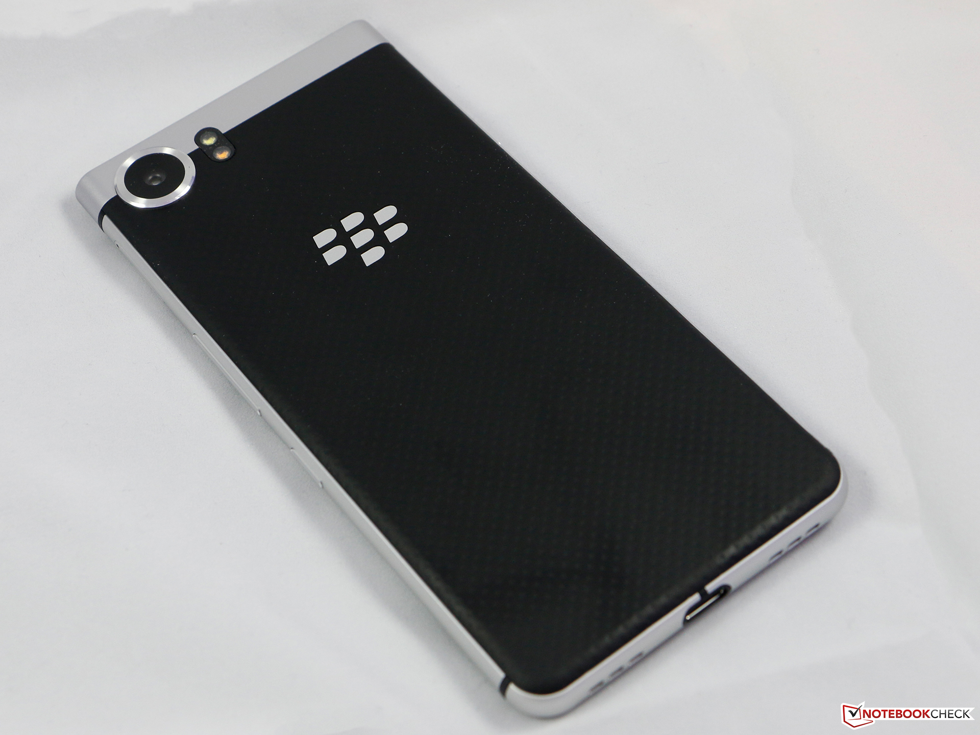 Das BlackBerry KeyOne besitzt ein solides Aluminium-Gehäuse, das sich haptisch gut anfühlt und sicher in der Hand liegt. Das liegt auch an der strukturierten Rückseite und trotz des vergleichsweise hohen Gewichts von 180 Gramm wirkt das Smartphone nicht zu schwer.