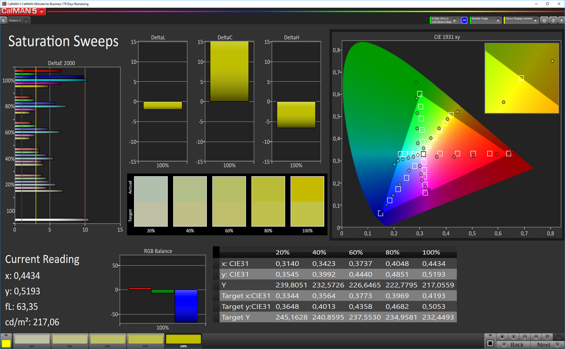| Delta E Graustufen * | 5.9 | 4.3 27% | 1.9 68% | 3.1 47% | 6.7 -14% |