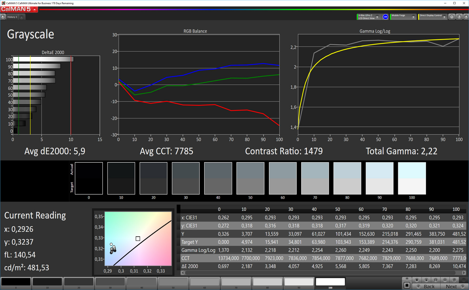 ΔE Greyscale Calman: 5.9 | ∀{0.09-98 Ø5}