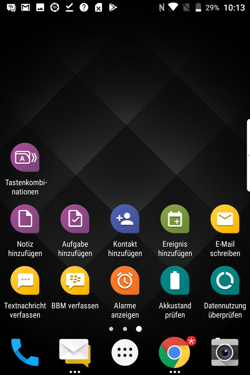 So besitzt das KEYone eine physische Tastatur unterhalb des Bildschirms, die sich besonders mit zwei Händen sehr komfortabel bedienen lässt. Aber BlackBerry hat sich diesmal noch mehr ausgedacht: Die gesamte Tastatur ist berührungsempfindlich und kann beispielsweise durch Streichen zum Blättern und Scrollen in Texten genutzt werden. Man kann Apps auf einzelne Tasten legen und sie durch langes Drücken der Taste starten. Die Leertaste versteckt zudem den Fingerabdrucksensor, der das Gerät sehr flott und zuverlässig entsperrt und es bei Bedarf auch direkt aus dem Standby holt. Die Leertaste kann auch zum Auslösen der Kamera genutzt werden. Eine virtuelle Tastatur gibt es nur auf ausdrücklichen Wunsch den Nutzers, man muss sie in den Optionen aktivieren. Es handelt sich dabei um BlackBerrys sehr schlichte eigene Tastatur, mit der es sich sehr flott tippen lässt.