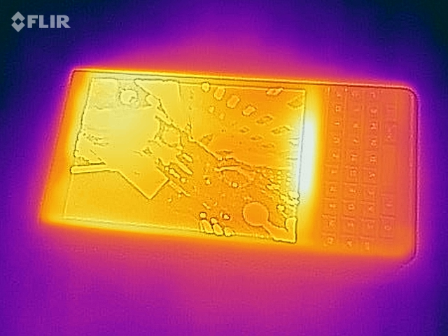 Die erreichte Gehäusetemperatur nach längerer Last ist mit maximal 38,8 °C spürbar, aber unproblematisch. Zur Tastatur hin nimmt die Temperatur zudem ab.