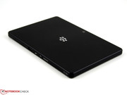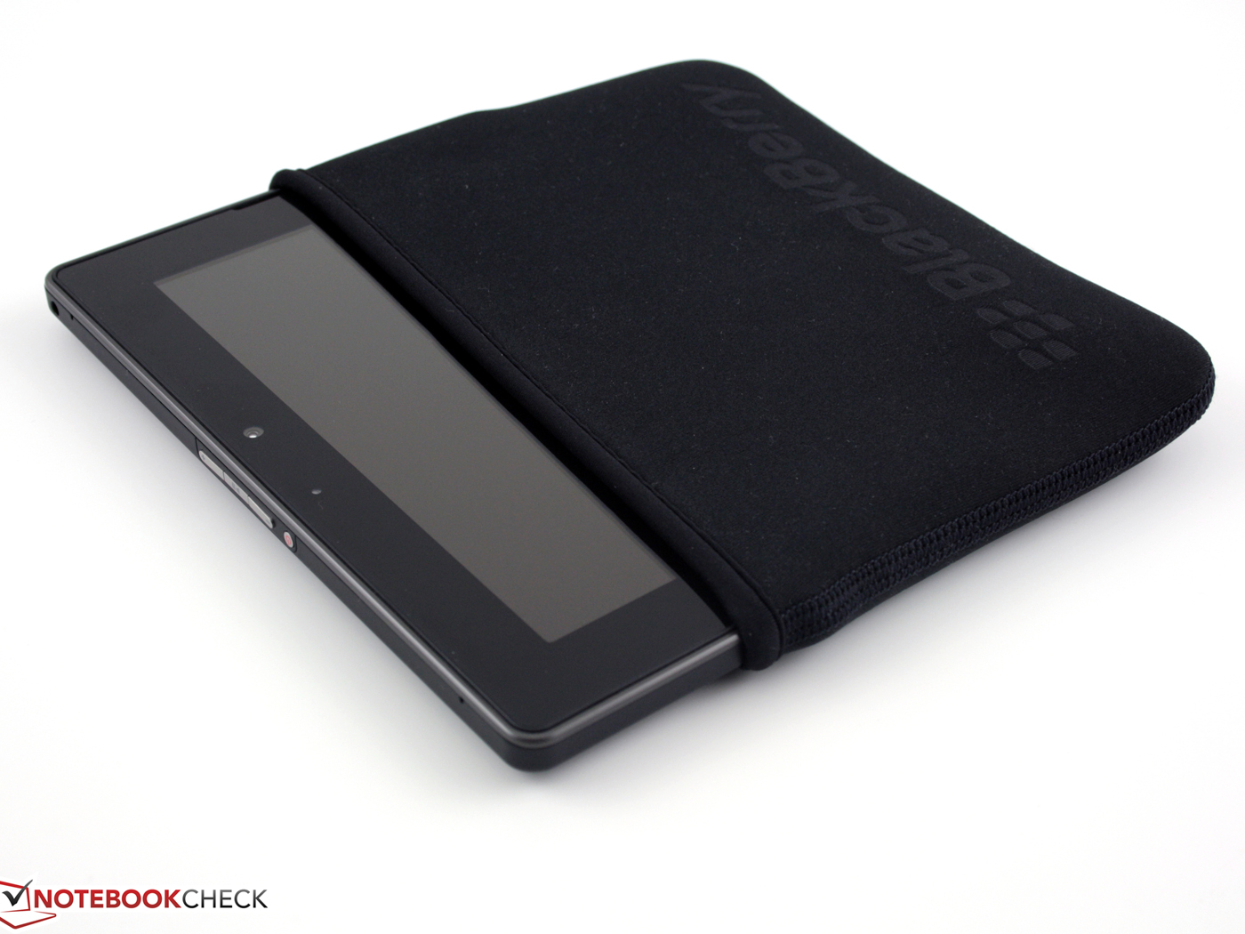 Der schwarze Rand um das IPS-Panel erscheint sehr breit (jeweils 1.7 Zentimeter), was aber eine Funktion hat. RIM hat bei seinem Tablet OS auf Home-, Zurück- und Menü-Buttons verzichtet. Zur Erinnerung, Android bringt unten links diese drei Standard-Buttons mit. Das PlayBook kann darauf verzichten, weil selbige Aktionen per Wischen über den Rand getätigt werden.