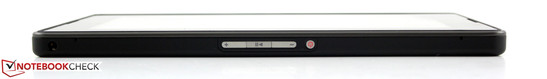 Die Lautsprecher verbergen sich rechts und links neben dem Display. Ihr Lautstärke-Pegel ist für ein kleines Tablet beachtlich. Die kleinen Membranen klingen aber bei Höchstpegel und Rock-Musik mit vielen Tiefen blechern und hohl. Bis zirka 75% Pegel ist das Klangbild relativ ausgewogen, hat einen kleinen Teil Tiefen zu bieten und das Gehäuse vibriert sogar. Interessant: Der Player merkt sich unterschiedliche Volume-Einstellungen für Kopfhörer-Ausgang und für die eingebauten Lautsprecher. So kann ein Herausziehen des Kopfhörers nicht für ein plötzliches Aufbrüllen der internen Lautsprecher sorgen.