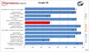 Der Tablet-Vergleich fällt in Browsermark, Google V8 und Sunspider 0.9.1 schlecht bis mittelmäßig aus. Browsermark und Google V8 fragen die Javascript-/HTML-Fähigkeiten des Browsers ab. Der Sunspider-Test konzentriert sich nur auf JavaScript. Die Leistung des Systems kann daher auf der messbaren Ebene nicht abschließend bewertet werden.
