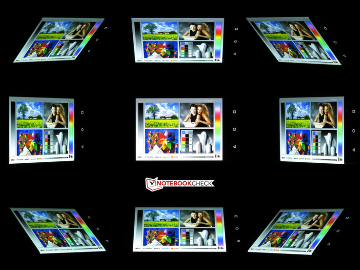 Die Blickwinkelstabilität des Displays fällt sehr gut aus: Bei flachen Betrachtungswinkeln verringert sich die Helligkeit nur geringfügig, Farbinvertierungen oder ein Durchscheinen der Hintergrundbeleuchtung sind bauartbedingt bei AMOLED-Panels ohnehin ausgeschlossen. Feststellbar ist allenfalls ein geringer Rückgang der Farbsättigung roter Bildbereiche.