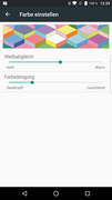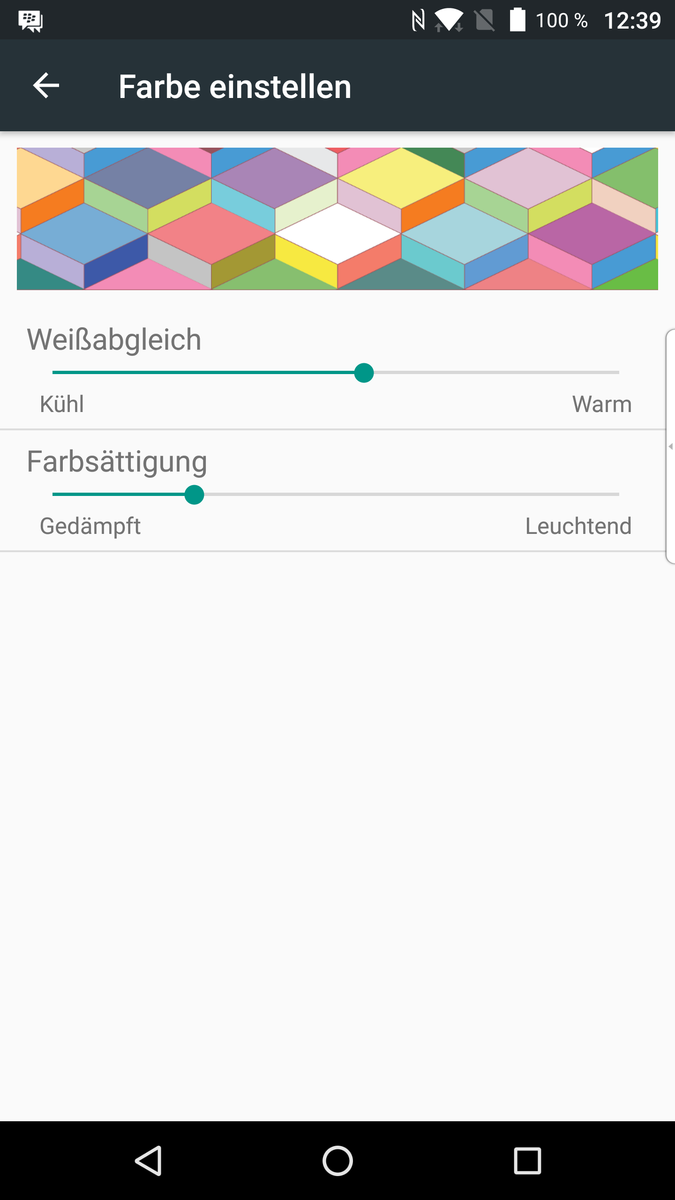 Nutzt man die Werkskalibrierung des Displays, ist die Farbabweichung mit durchschnittlichen DelteE-Werten von 2,7 (Graustufen) bzw. 4,8 (Farben) bereits in einem akzeptablen Bereich. Mit einer manuellen Anpassung im Einstellungsmenü kann diese noch weiter auf 2,4 (Graustufen) beziehungsweise 4,1 (Farben) gesenkt werden (Idealbereich je < 3). Dabei rückt auch die Farbtemperatur mit 6.436 K anstatt 6.845 K näher ans Ideal von 6.500 K heran. Zwar sind andere Geräte – wie beispielsweise das Google Nexus 5X oder das Samsung Galaxy S7 Edge – noch etwas farbtreuer, dennoch liegen die Resultate des Testgeräts in einem erfreulich guten Bereich. AMOLED-typisch ist zudem die Farbsättigung etwas erhöht.
