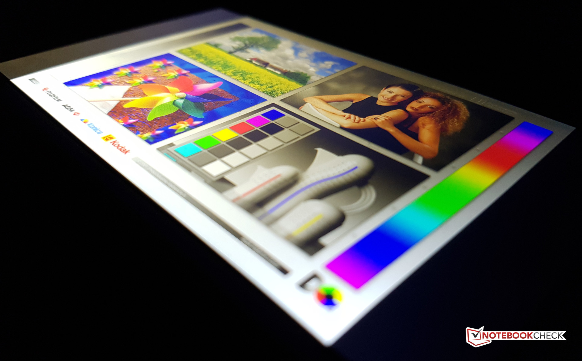 Der größte Kritikpunkt des IPS-Panels sind das geringe Kontrastverhältnis von nur 1:403 sowie der relative schlechte Schwarzwert von nur 1,08 cd/m2. Dies ändert auch der realitätsnahe APL-50-Test nicht (1,09 cd/m2). Die Analyse mit einem Fotospektrometer und der CalMAN-Software zeigen dagegen vergleichsweise geringe Abweichungen in der Farb- (5,7) und Graustufendarstellung (5,8). Die gemessene Farbtemperatur von 8.164 Kelvin fällt etwas zu kühl aus - in der Praxis zeigt sich dies in einem leichten Blaustich.